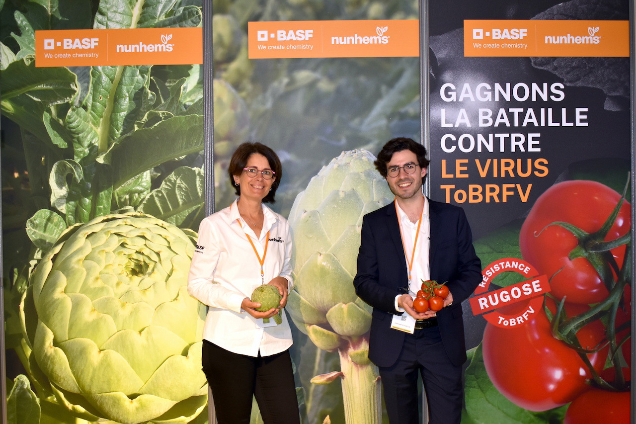 Agnès Imbeau (spécialisée dans l'artichaut hybride) et Grégoire Vendeville (spécialisé dans les tomates, concombres et salades hors-sol)
