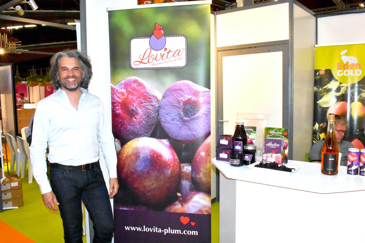 Sébastien Guy, venu représenter Lovita, la prune rouge à chair rouge en forme de coeur au medFEL 2023