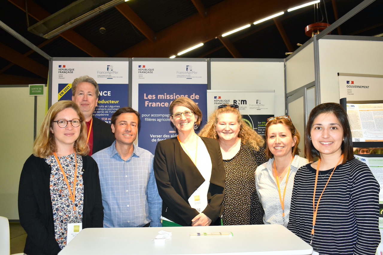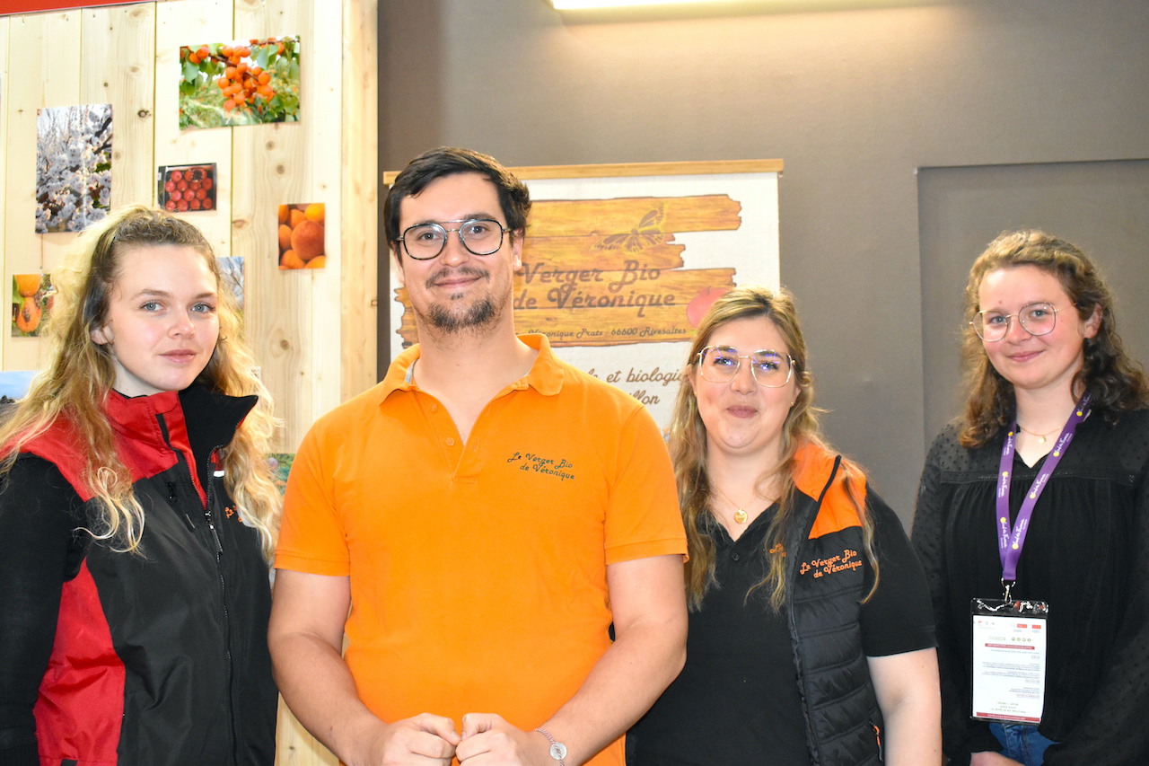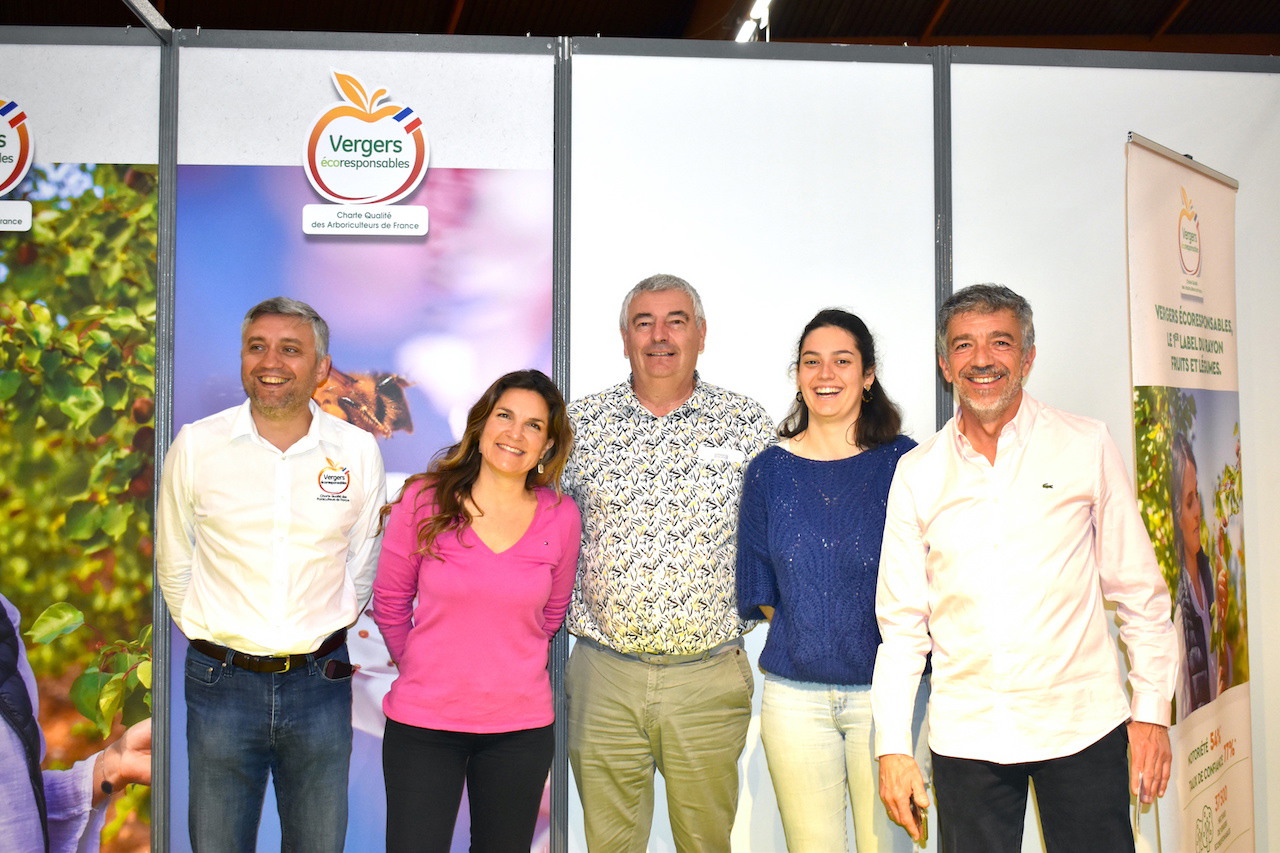 Pierre Venteau, Directeur de l'Association Nationale Pommes Poires et l'équipe de l'AOP Pêches et Abricots de France : Muriel Millan, Responsable technique, Bruno Darnaud, Président, Clémence Falque et Raphaël Martinez, Directeur sur le stand Vergers écoresponsables