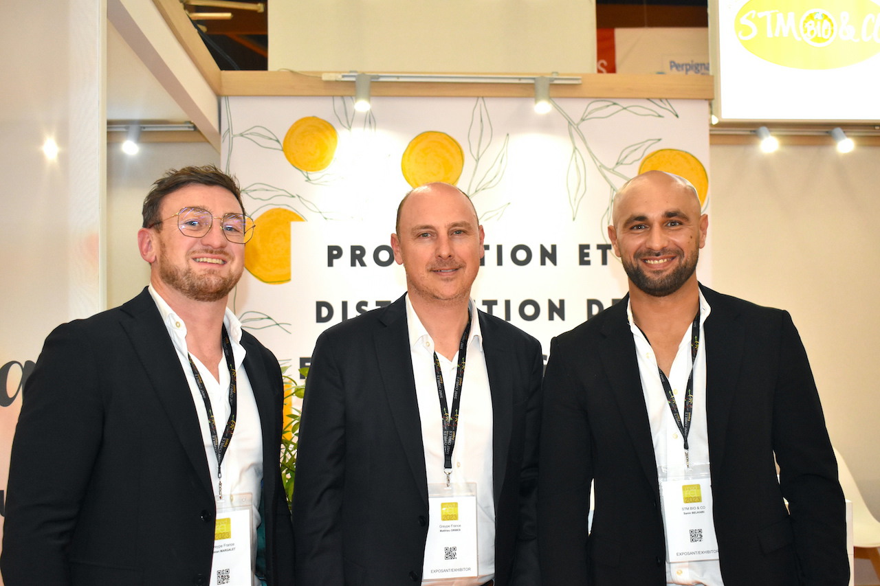 Tristan Margalet, Matthieu Orybes et Samir Belkhiri sur le stand Greype France et STM Bio