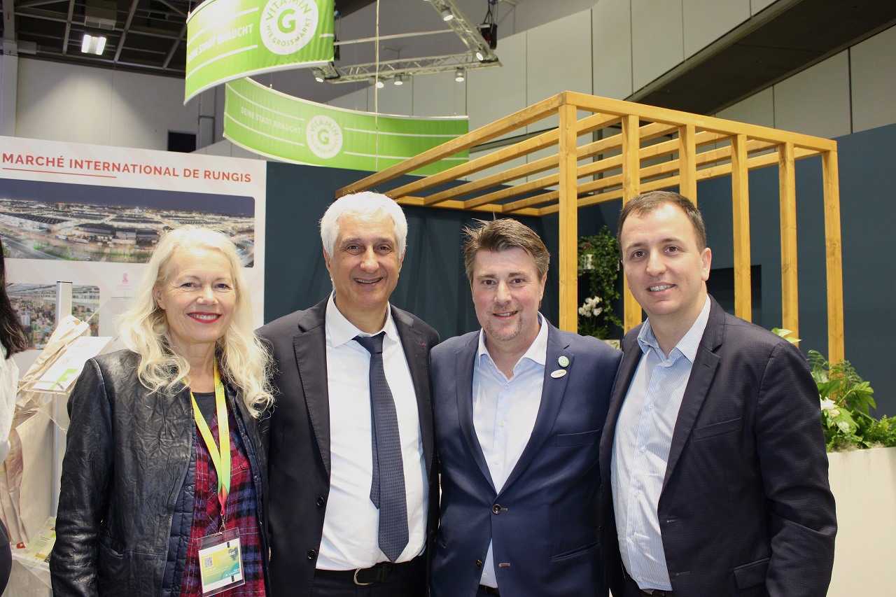 Frédérique Wagon, Secrétaire générale Fédération des Marchés de Gros de France, Stéphane Layani, Président du Marché International de Rungis, Frank Willhausen, directeur opérationnel de FrischeMarkte et Benoit Mathieu, Président du MIN de Cavaillon
