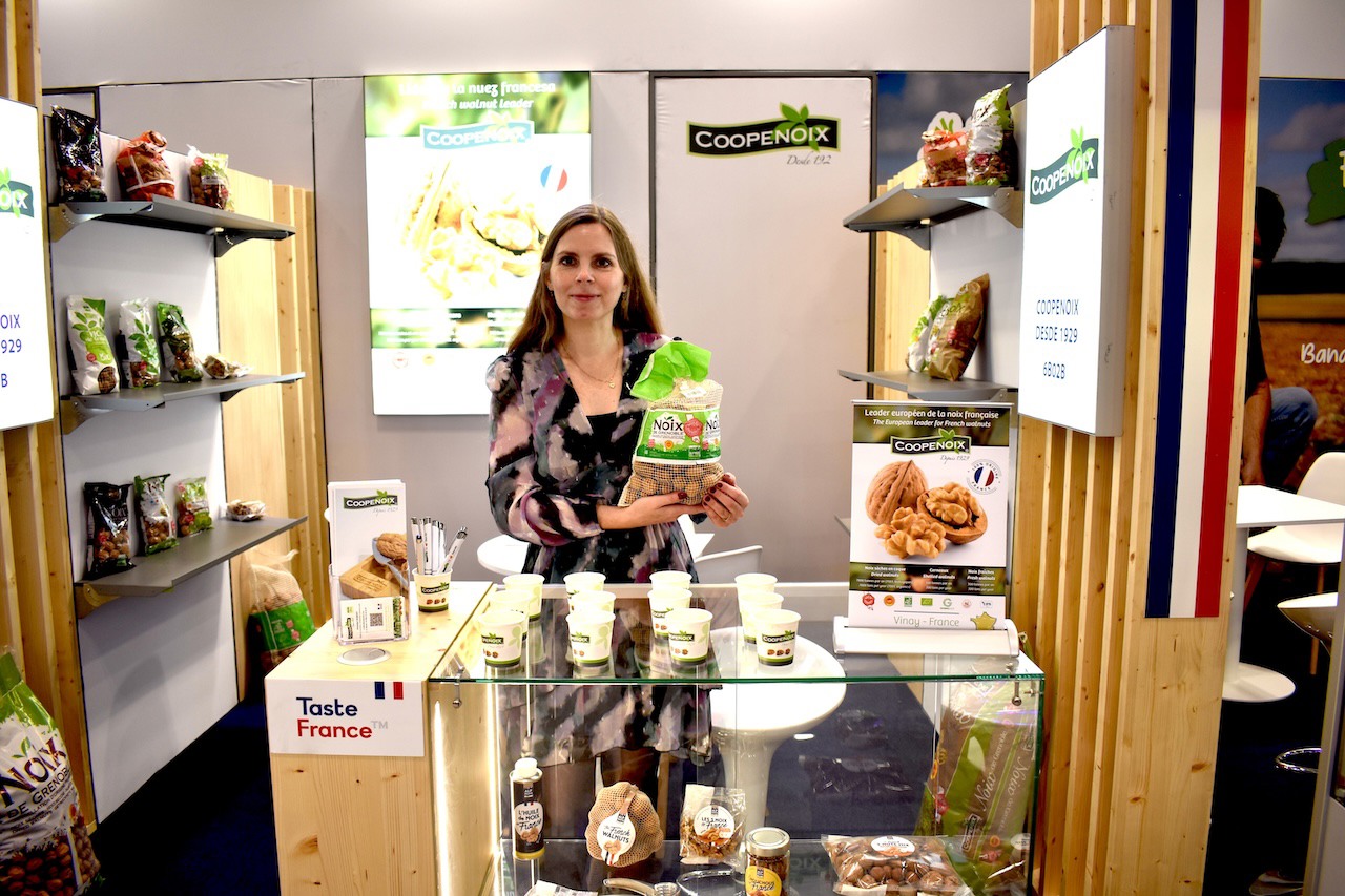 Anabelle Robert de Coopenoix, qui présente les nouveaux produits de l'entreprise dont un bidon d'huile de noix destiné au marché français et à l'export