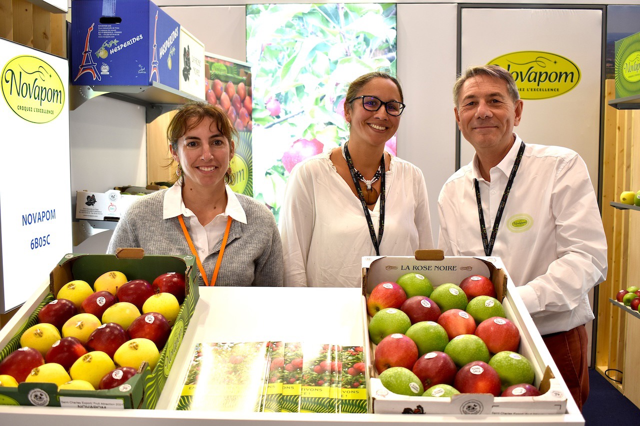 Laure Chiotasso, Ludmila Chevtchouk et Franck Giusti de l'entreprise Novapom étaient présents au Fruit Attraction pour présenter leur gamme de pommes, dont la Story