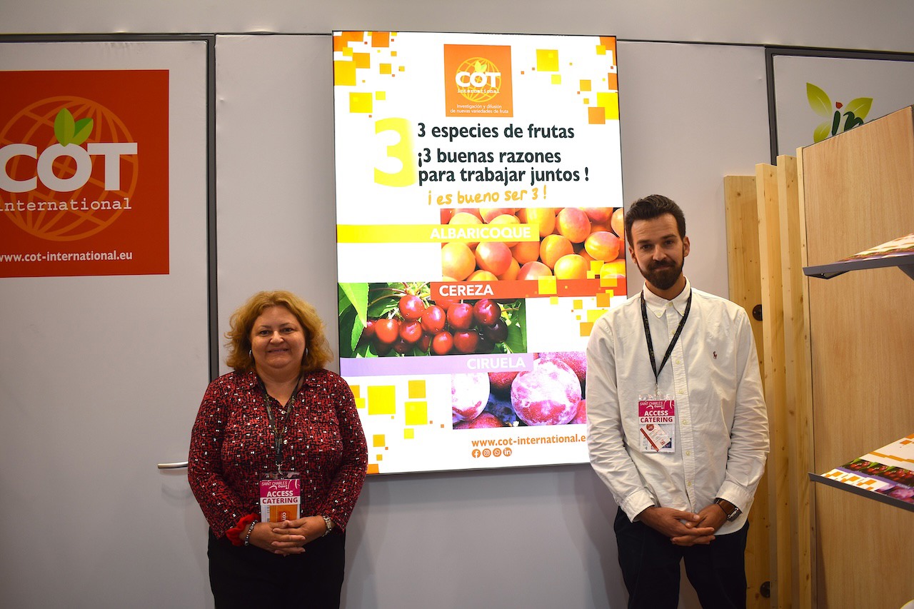 Marie-Laure Etève et Pascal Bassols-Pot venus représenter Cot International et ses variétés de fruits à noyau au salon du Fruit Attraction