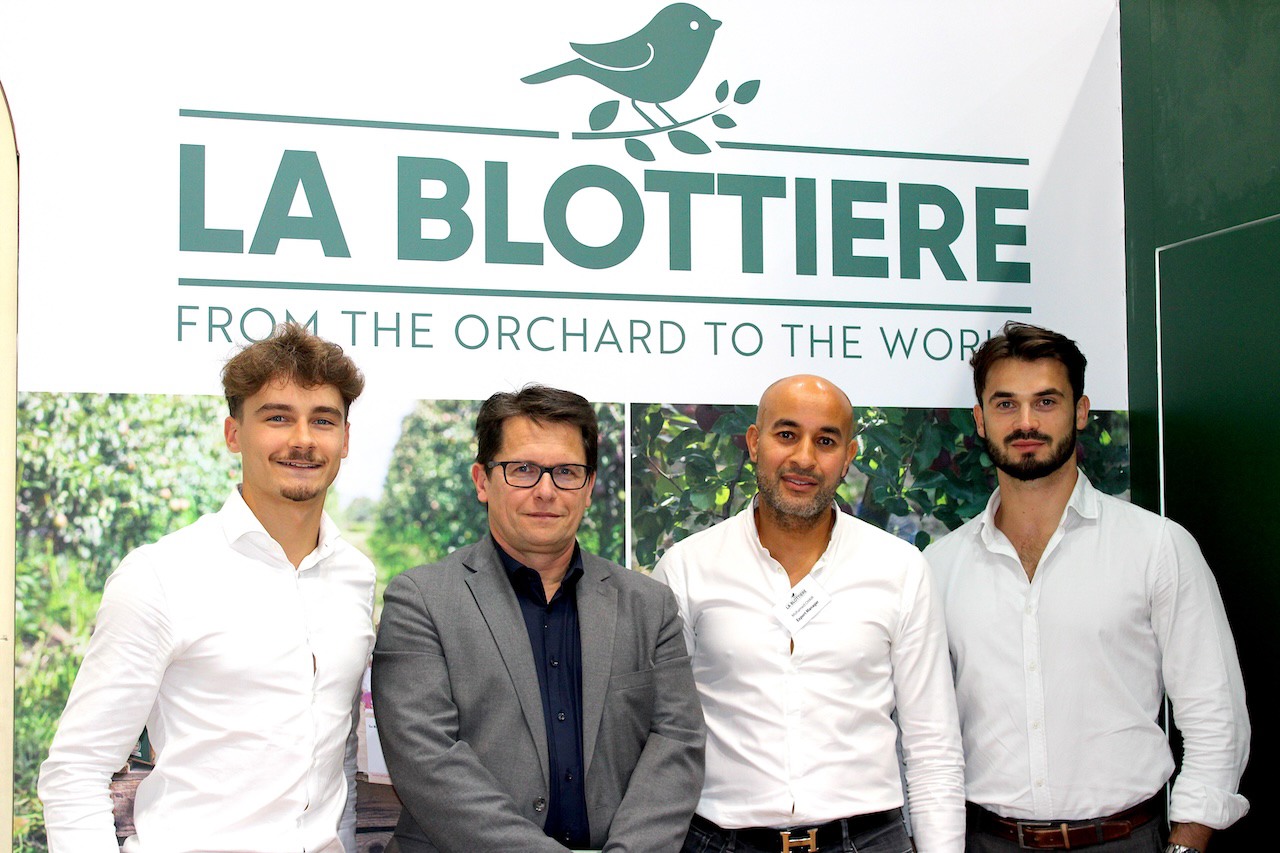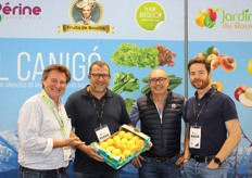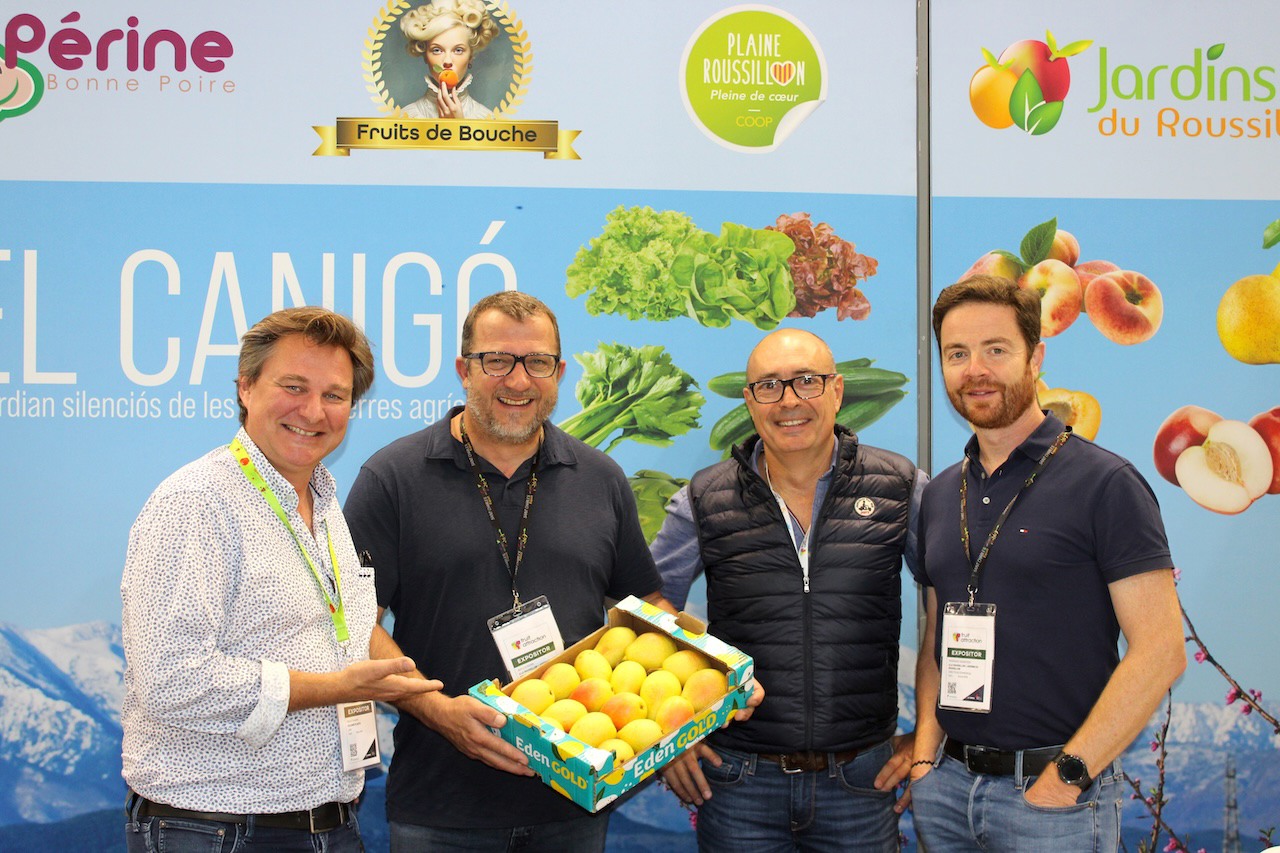 Benoit Escande (pépinières Escande), Pierre Battle (Ille Roussillon), Frédéric Garcia (Pépinières Escande) et Sebastien Rodriguez (Ille Roussillon) avec la poire Eden Gold