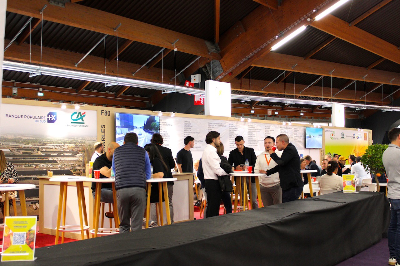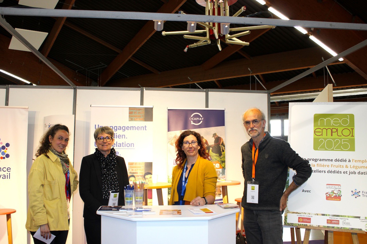 Le stand de medEMPLOI avec les organismes partenaires : apecita, OCAPIAT, Fédération des Fruits et Légumes d'Occitanie et l'Agence de développement économique de la région Occitanie AD'OCC