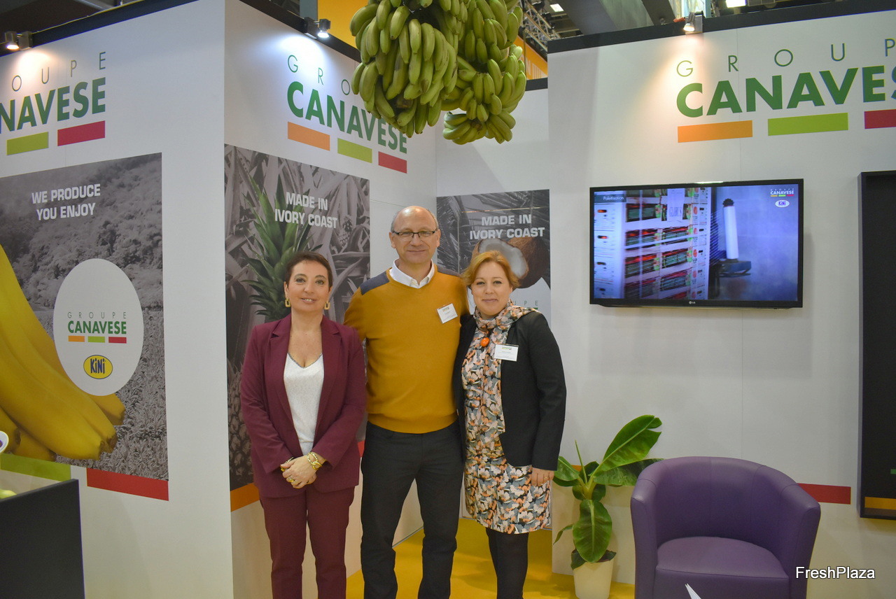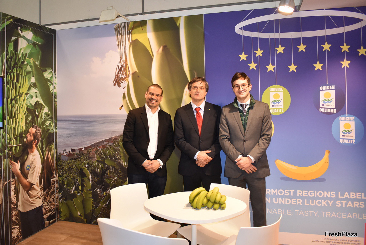 Karym Bagoee, Domingo Martin Ortega et Javier Carmona Pradal venus faire la promotion des filières de bananes françaises, espagnoles et portugaises sur le stand Exotic Taste of Europe