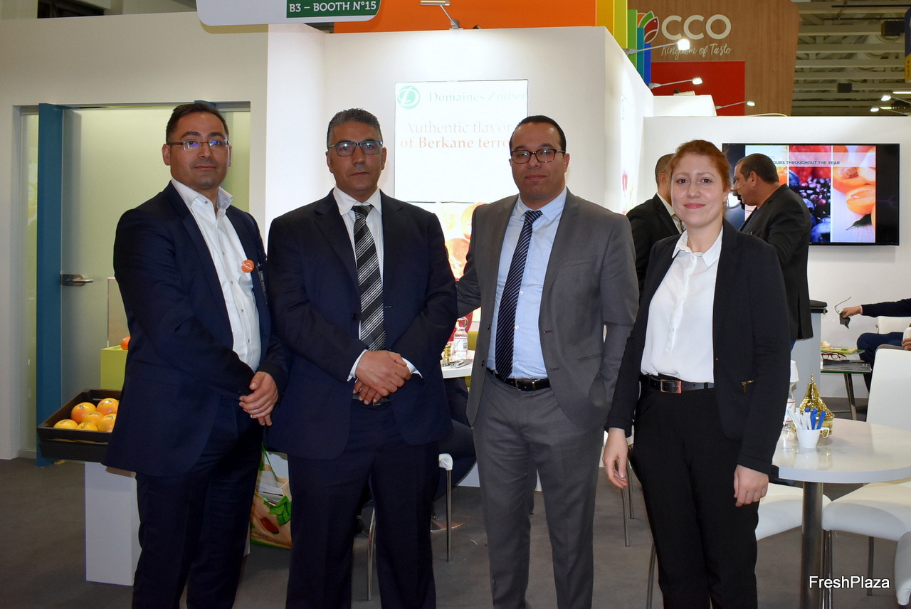 L'équipe de la société Les Domaines Zniber avec Hassan El Bouchouafi, Essaid El Khounchafi, Othmane Michbal et Meryem Baddou venus présenter au salon pour la première année la mandarine Nadorcott
