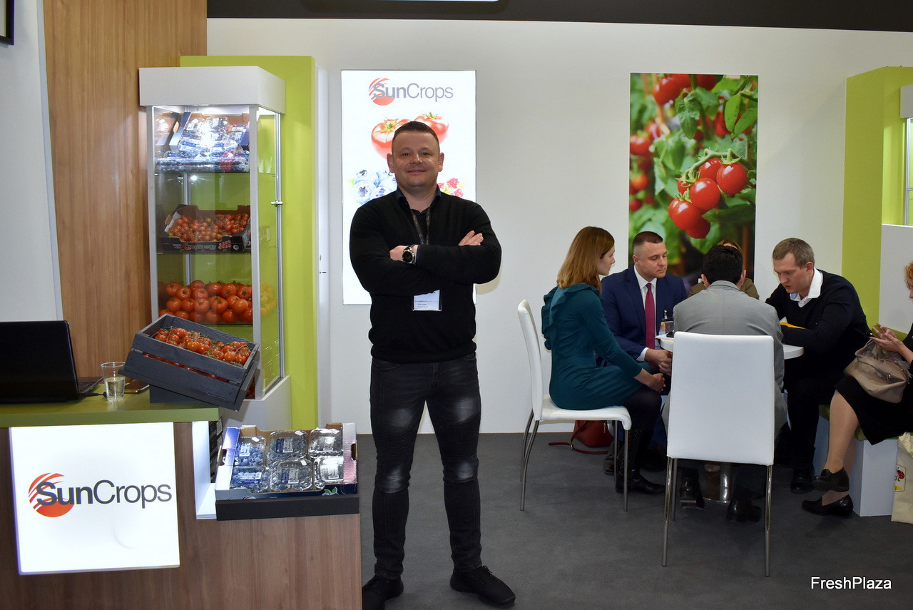 Krystian Lipiec de la société SunCrops présente sa gamme de tomates, de myrtilles et de framboises