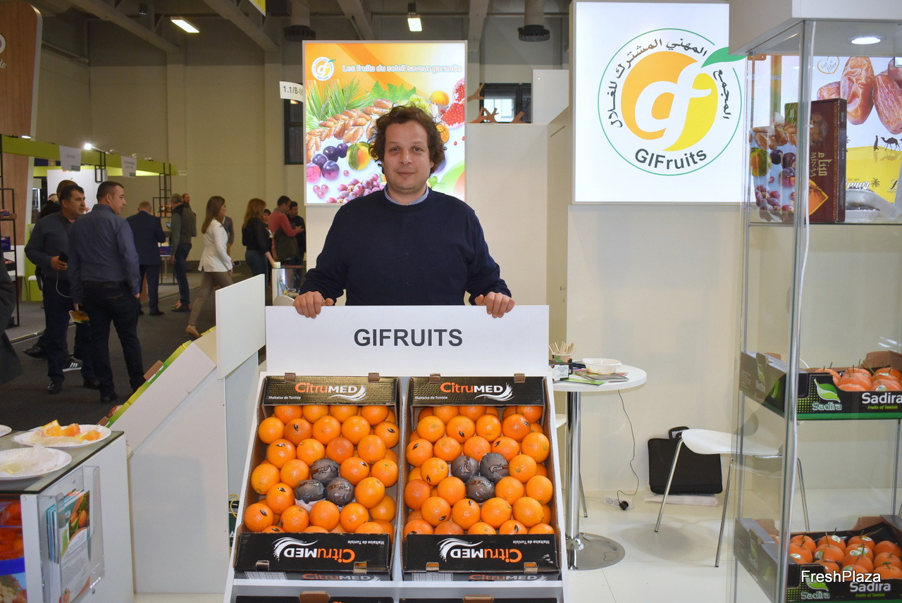 Mbarek Blileg de la société Fresh Fruit présente sa gamme d'agrumes