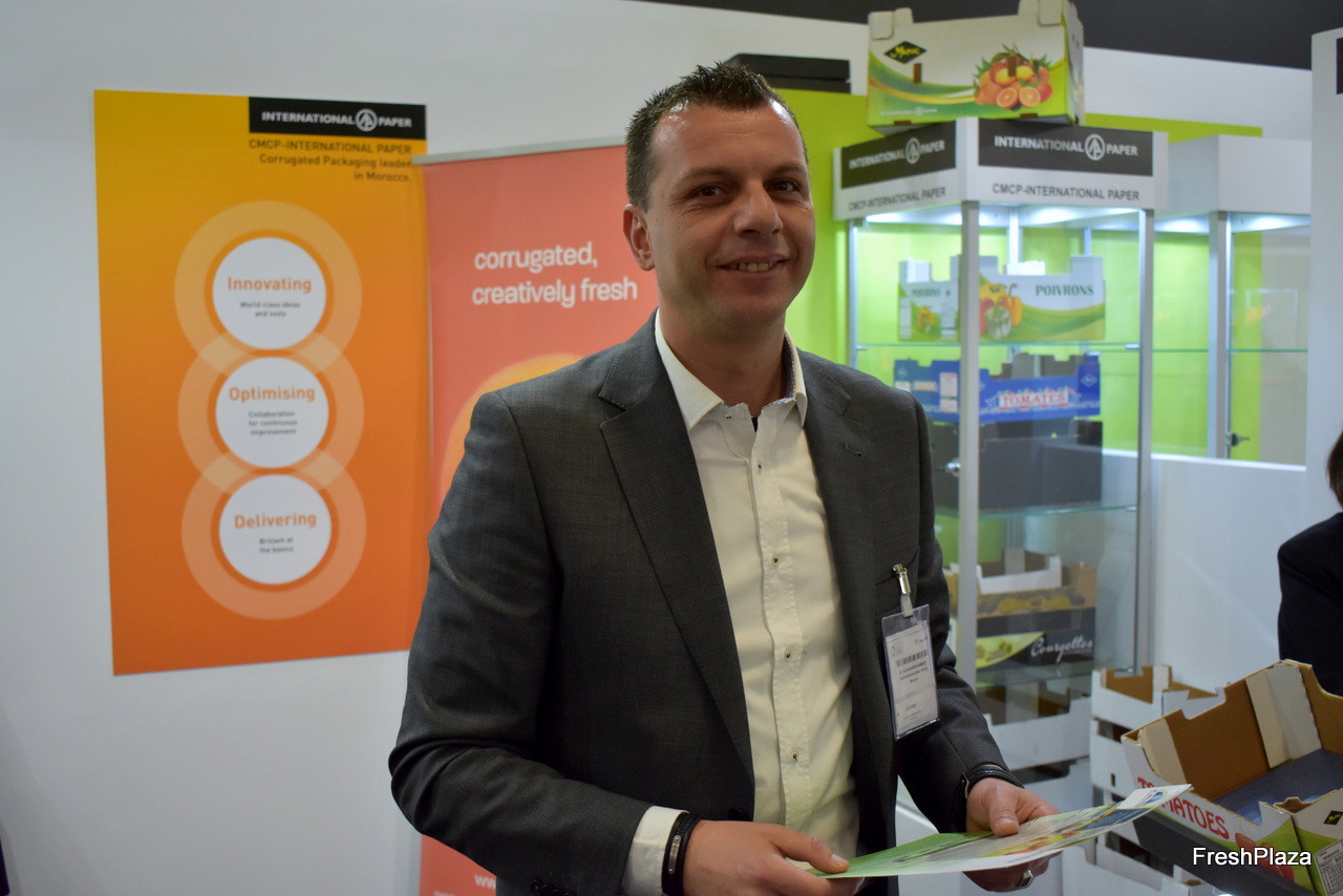 Dans le hall marocain, Mohammed El Houari de CMCP International Paper était entrouré de clients. L'entreprise livre du packaging pour une grande partie des entreprises.