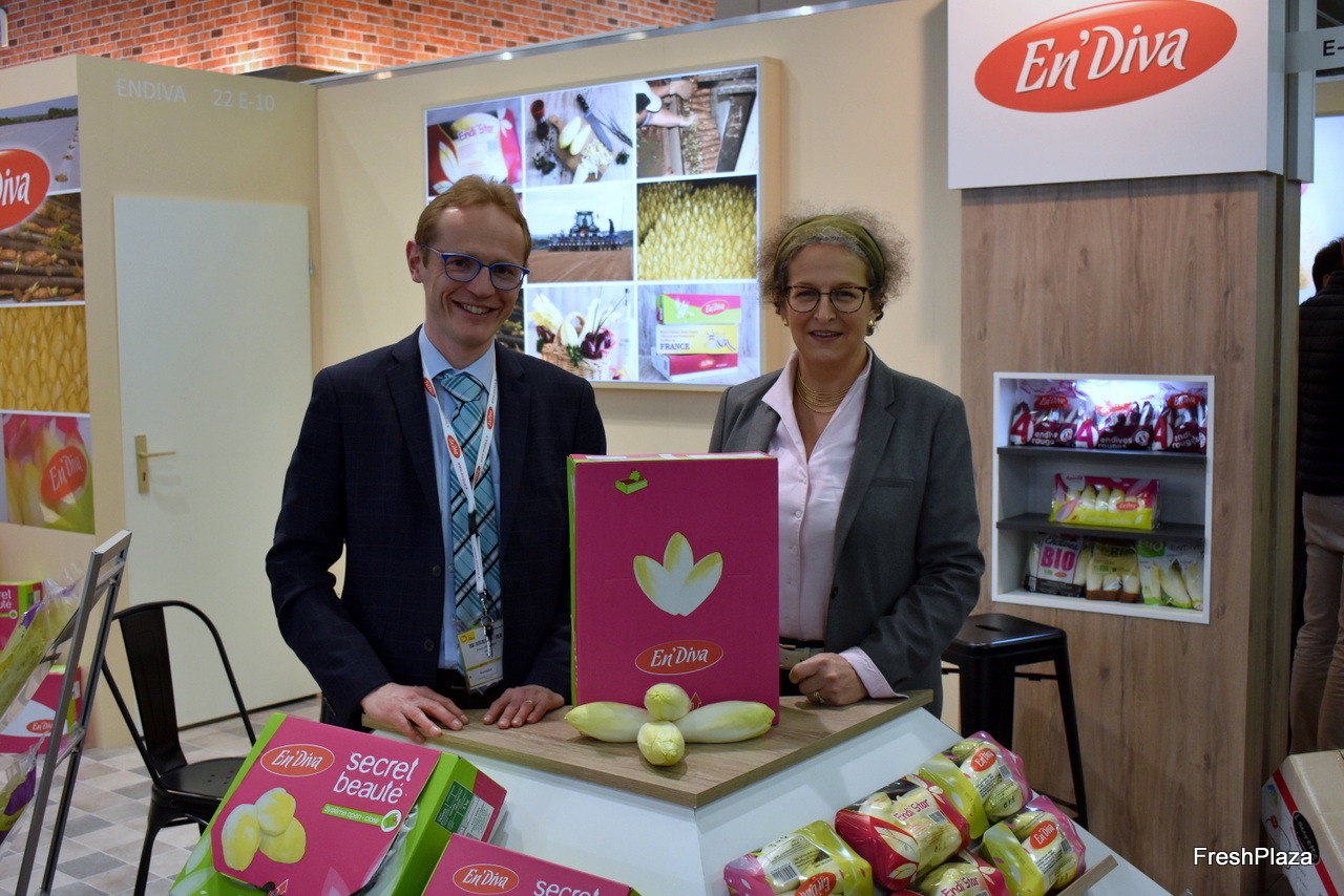 Alban Descamps (commercial) et Pascalle Lefebvre (productrice d'endives blanches et rouges) de l'entreprise En'Diva ont présenté toute leur gamme d'endives et ses dérivés