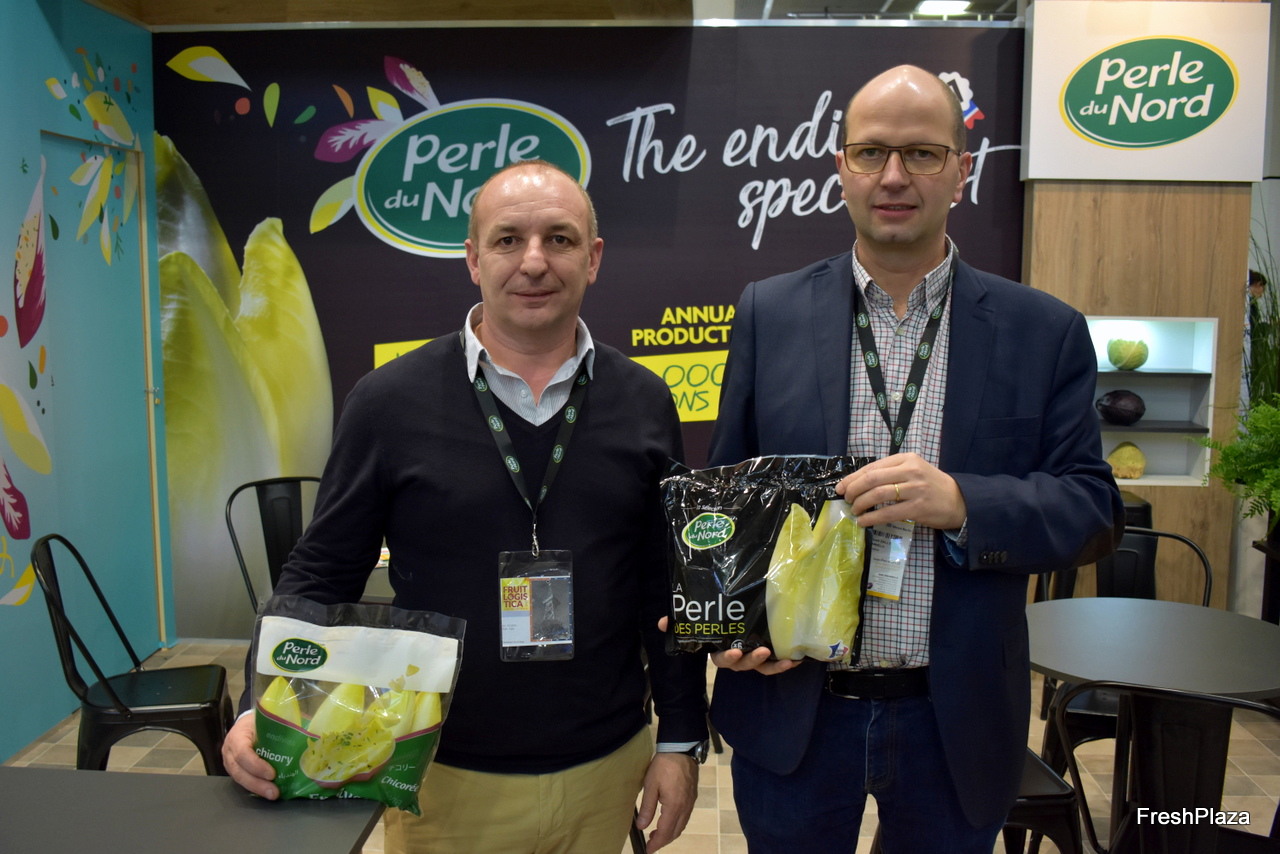 Vincent Cool et Jean-Pierre Dalle avec les endives de la marque Perle du Nord