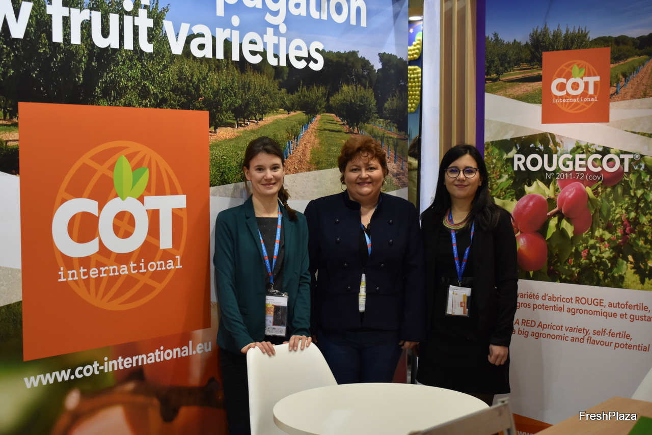 Lily Delpretti, Marie-Laure Étève et Lisa Herrero de COT International ont mis en avant le Rougecot, une variété d'abricot rouge