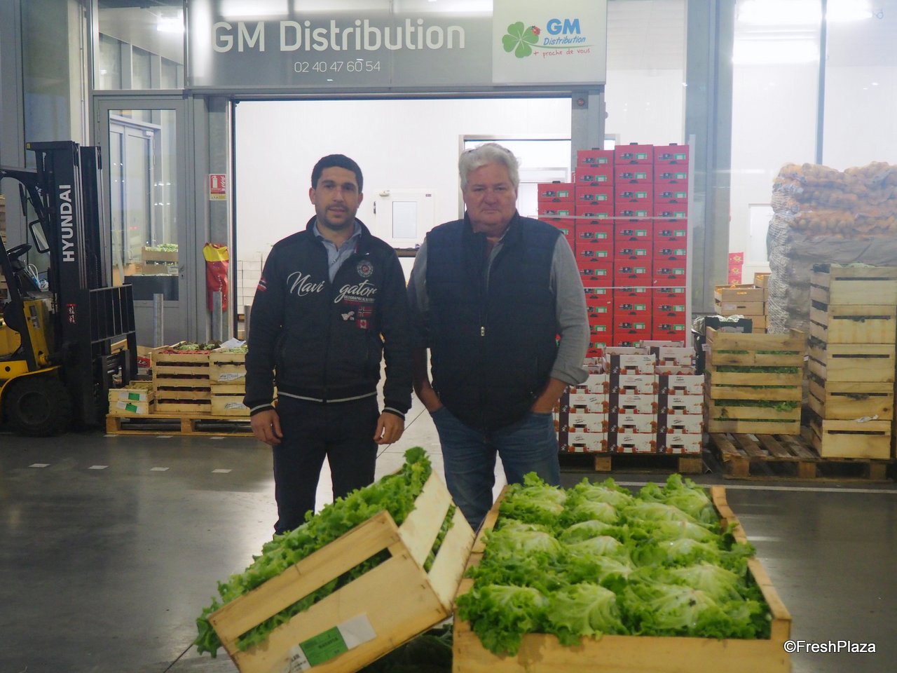 Yann Gaudemer et Thierry Graulier, proposent à la vente de la salade batavia produite localement à Saint-Philbert-de-Grand-Lieu, situé à 10 km de Nantes