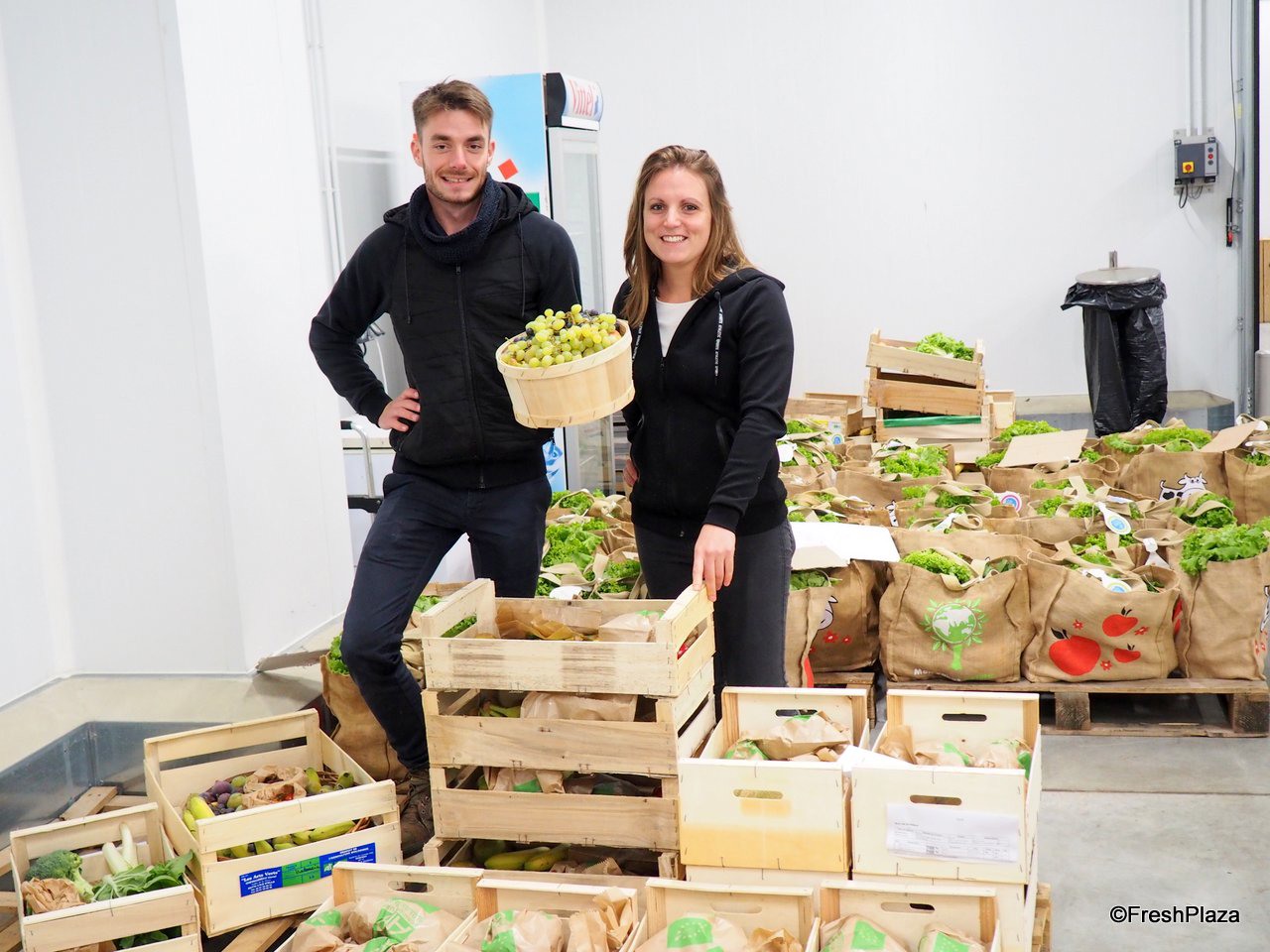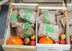 Etienne et Céline de la société Kerbio faisant partie du groupe Les Coteaux Nantais, pour laquelle il est important de proposer des produits locaux. Ici, ils proposent des paniers bio et corbeilles de fruits destinés entre autres aux entreprises