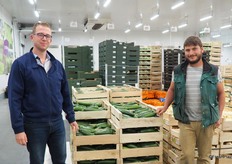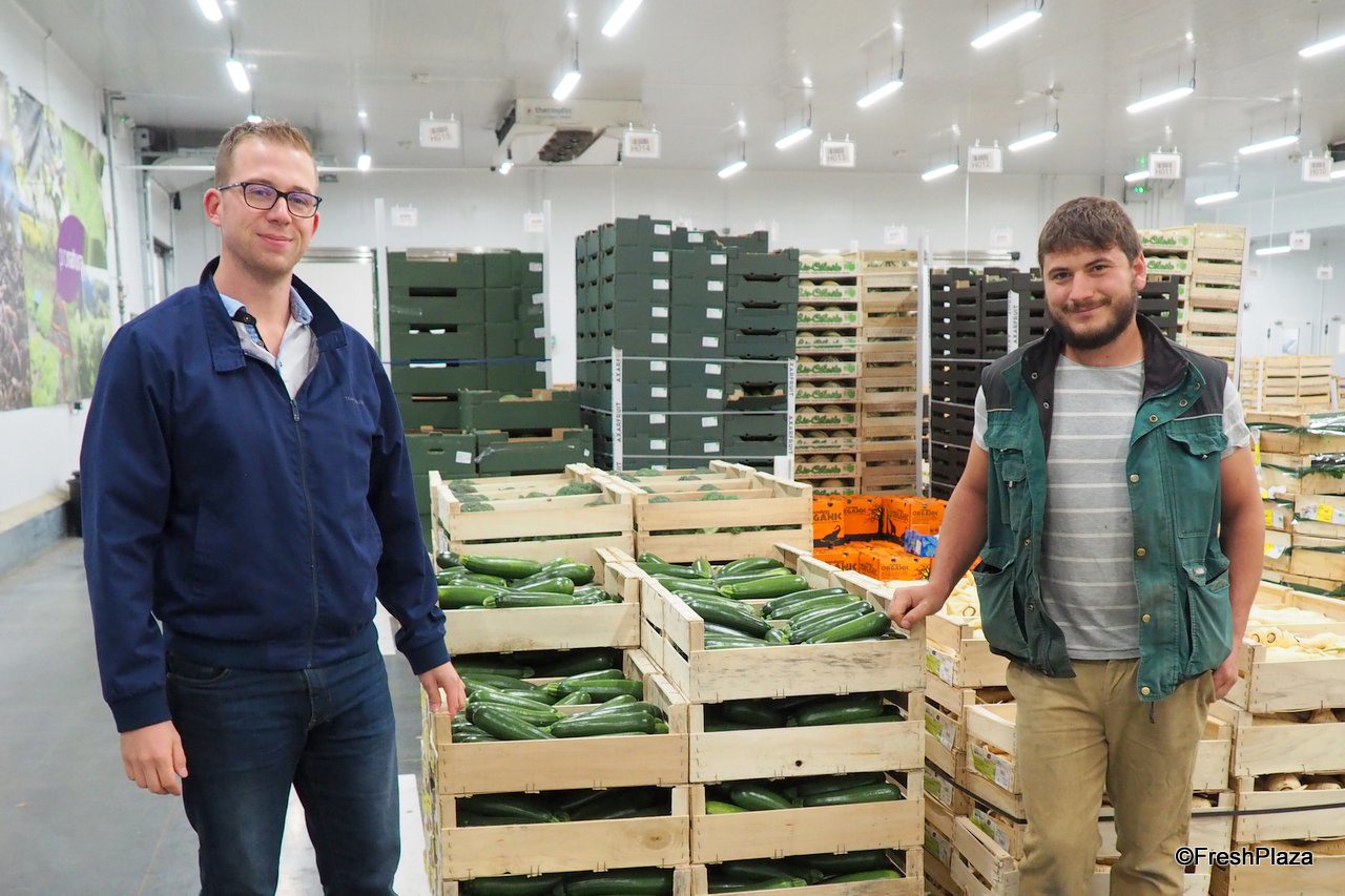 Nicolas LePaboul, grossiste chez Pronatura et François Abillard, producteur de courgettes bio qu'il présente sur la photo