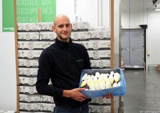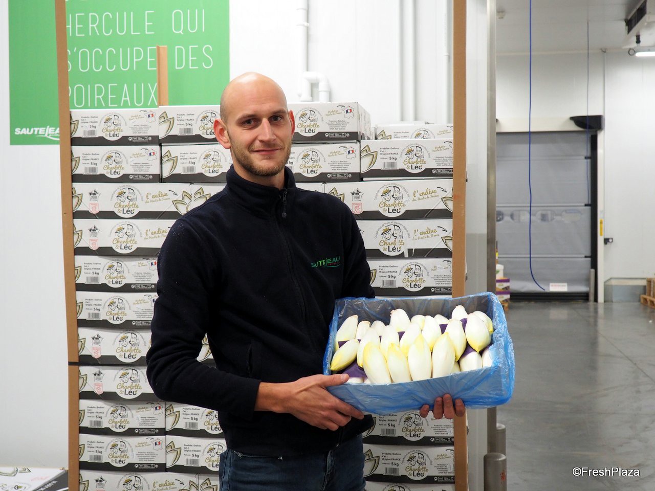 Arthur présente une des spécialités du grossiste Sautejeau, des endives provenant du Nord de la France