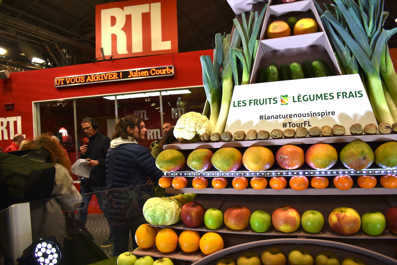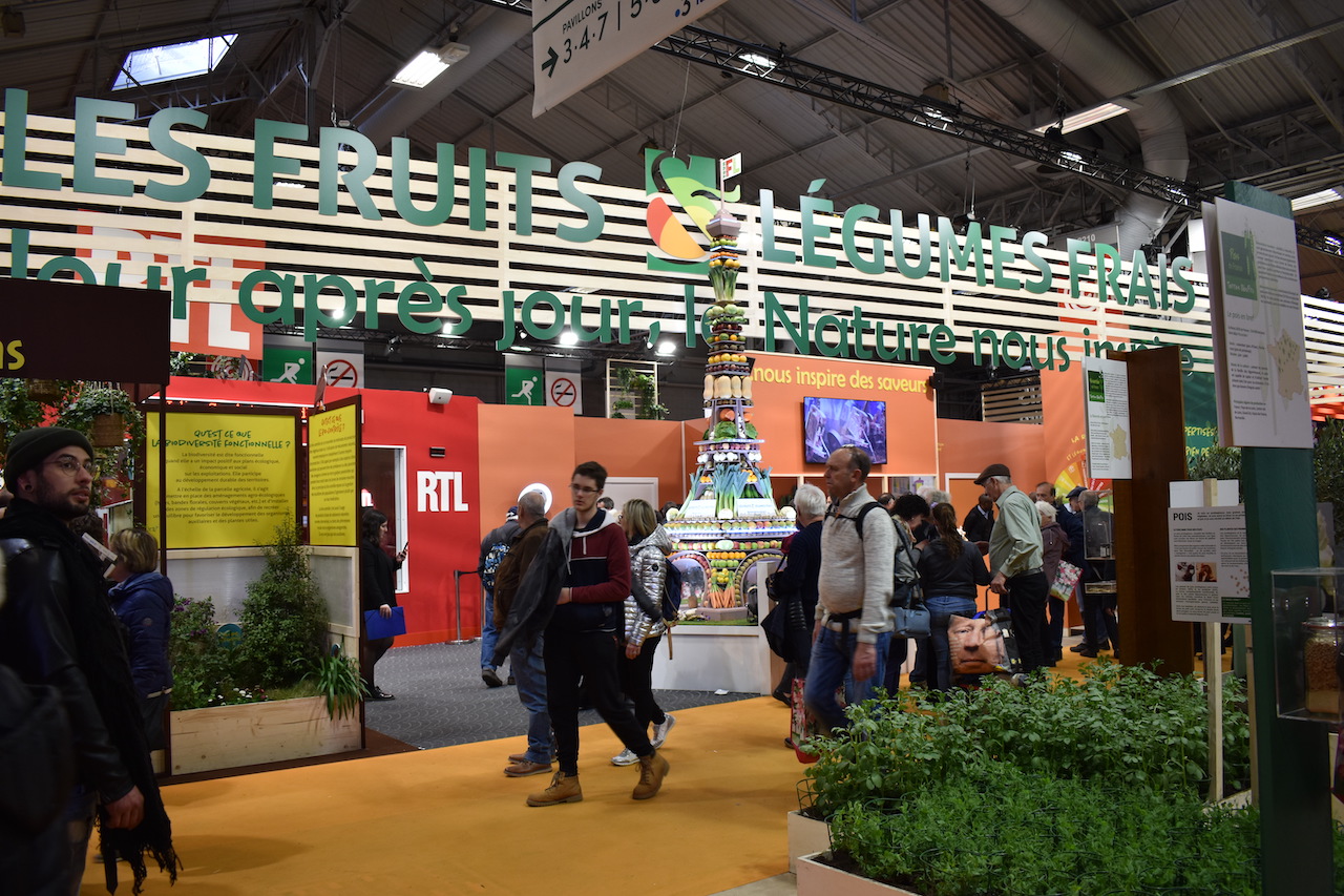 Interfel, au salon avec son emblématique Tour Eiffel faite de fruits et légumes frais.