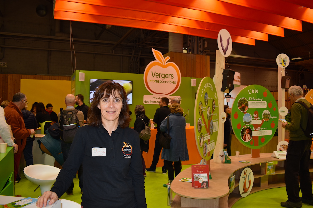 Sandrine Gaborieau sur le stand de l’ANPP, est venue au salon pour rencontrer le grand public, mais aussi pour que les producteurs se rendent compte qu’il y a beaucoup de bienveillance de la part des consommateurs. Le message concernant le label Vergers Ecoresponsables a par ailleurs été très bien reçu.