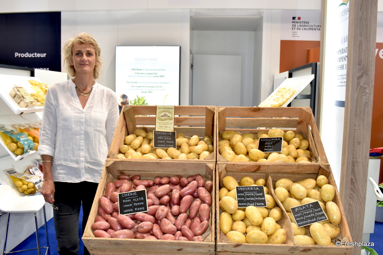 Catherine Maudet de l'entreprise Le Gouessant, présente les différentes variétés de pommes de terre disponibles en Europe et à l'Export et les différents types de conditionnements. De gros investissements ont récemment été réalisés par le groupe sur la ligne conditionnement.