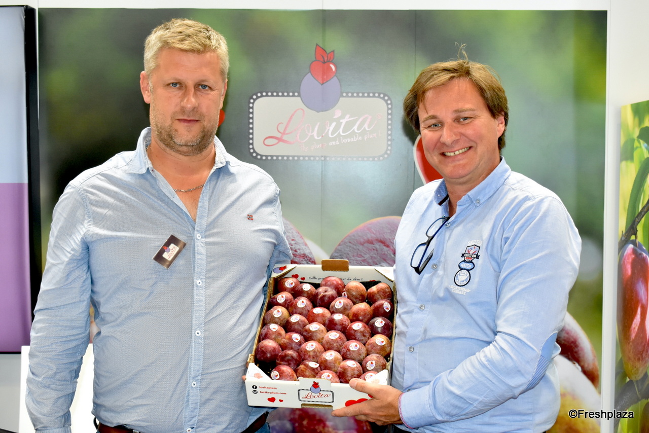 Sébastien Rispe et Benoît Escande ont présenté la Lovita, prune rouge à chair rouge en forme de cœur.
