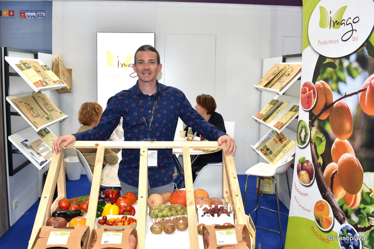 Guillaume Fruitet sur le stand d'Imago, producteur de fruits et légumes bio.
