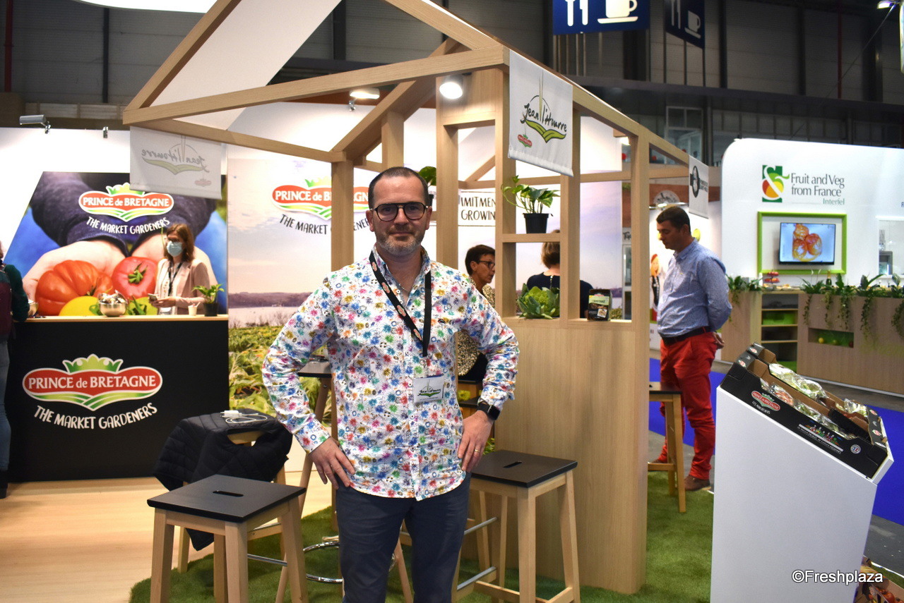 Denis Robidou de l'entreprise Jean L'Hourre sur le stand de Prince de Bretagne venu présenter sa gamme de légumes avec notamment les mini légumes.