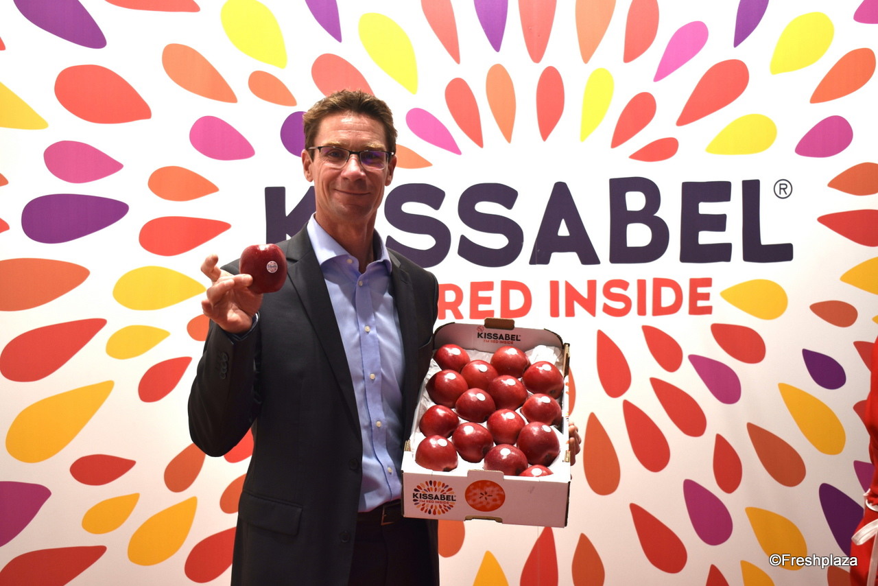 Emmanuel de Lapparent met en avant cette année une nouvelle variété de pommes rouge à chair rouge. La gamme Kissabel compte désormais sept variétés de pommes.