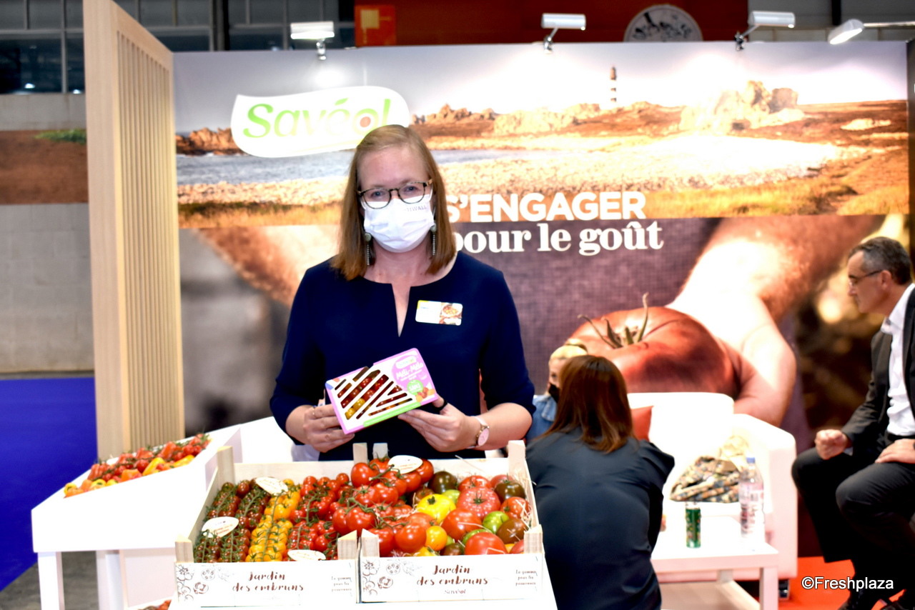 Claire Malgorn de la société Savéol met en avant les nouvelles barquettes 100 % carton testées en 2020 et lancées officiellement au printemps de cette année.