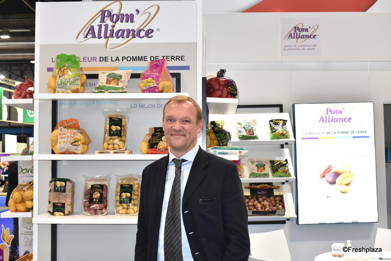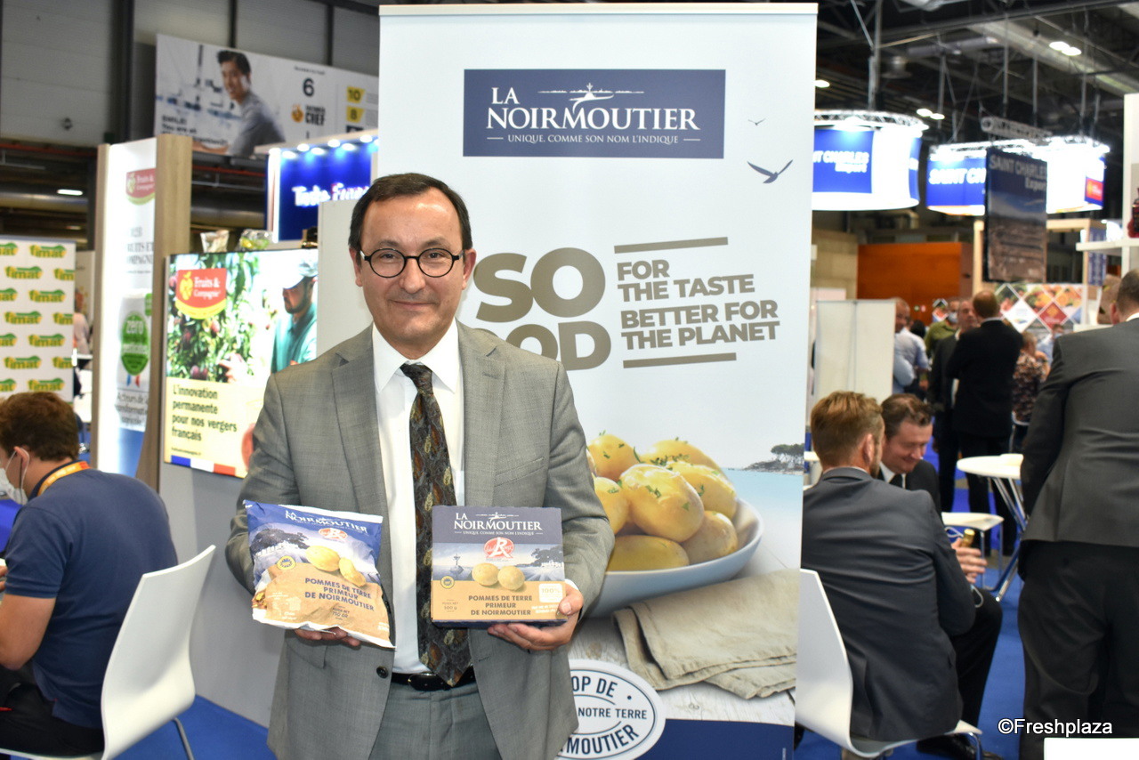 Nicolas Paille venu représenter la célèbre pomme de terre de Noirmoutier, désormais disponible en sachet papier avec une visibilité au verso.