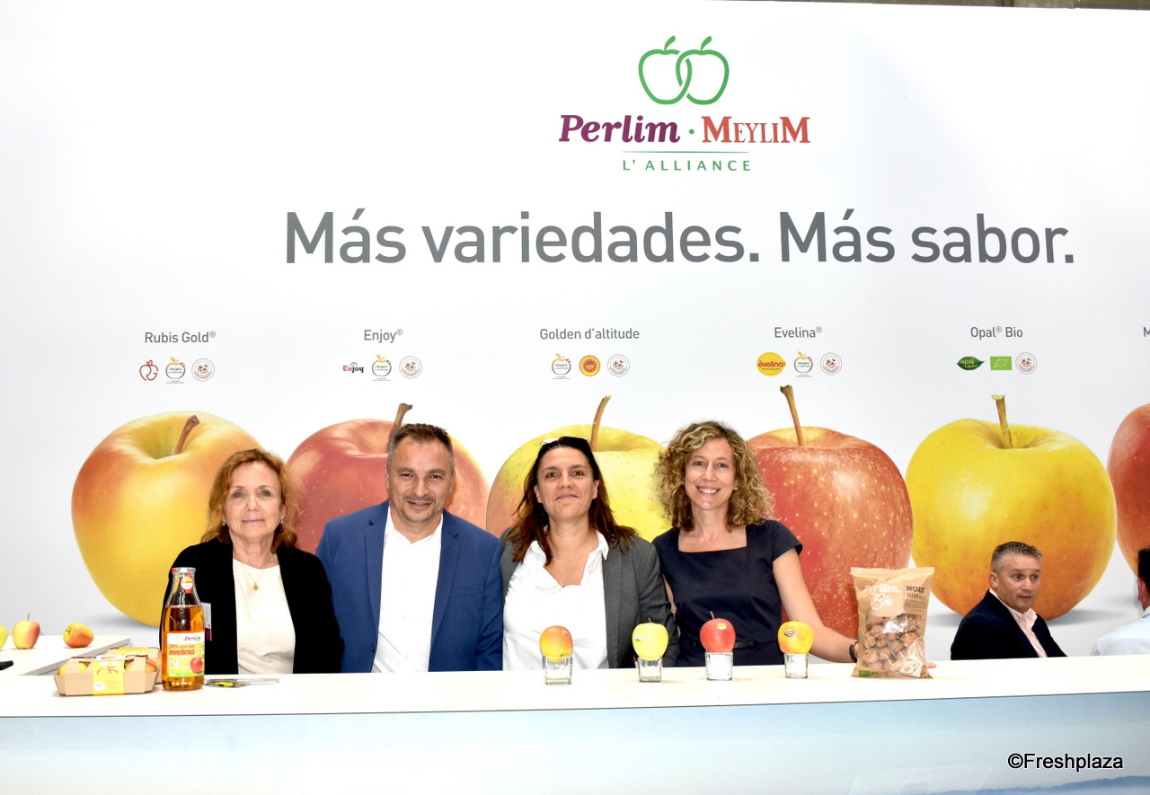 L'alliance Perlim Meylim et Perlim Noix présentes une nouvelle fois au salon Fruit Attraction. L'équipe est venue mettre en avant ses variétés de pommes dont l'emblématique Golden Bio et la toute nouvelle variété de pomme jaune, la RubisGold.
