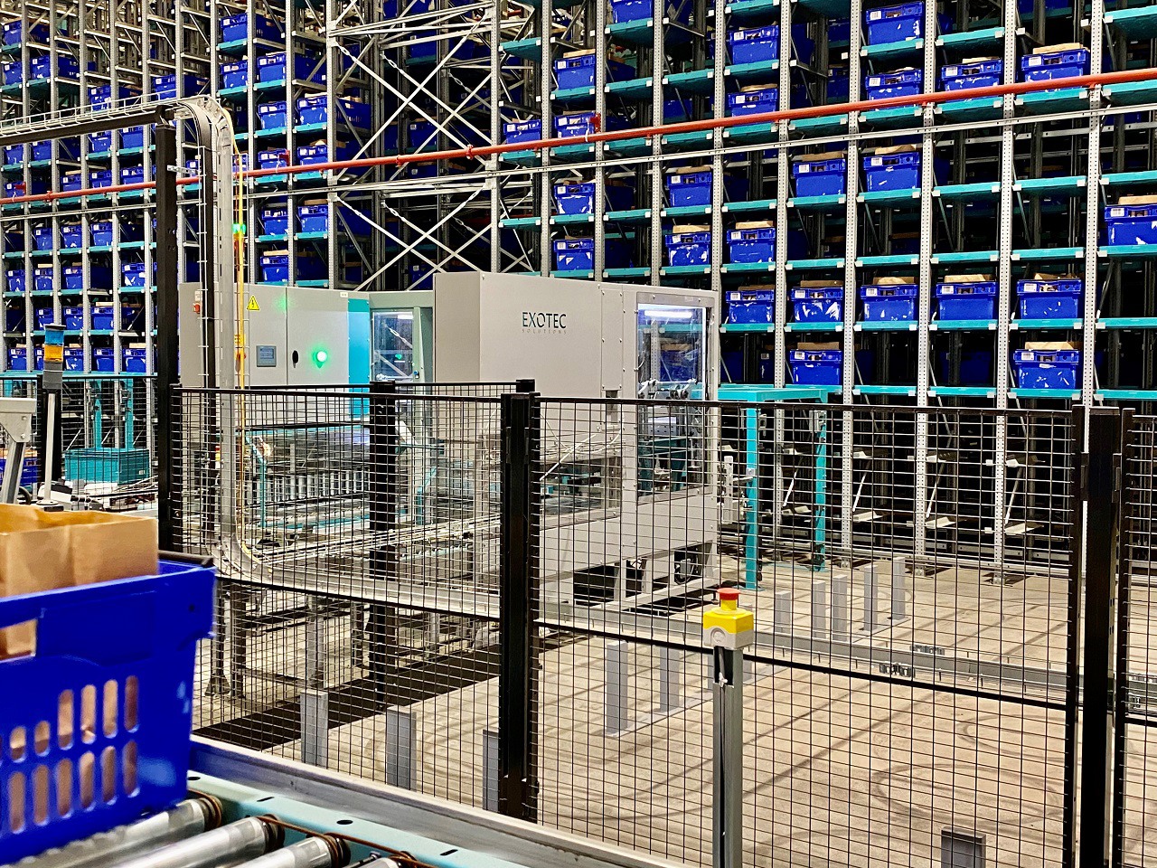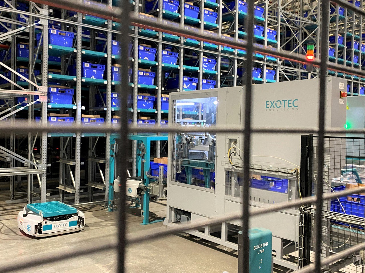 Module Exotec et robots Skypod en plein travail.