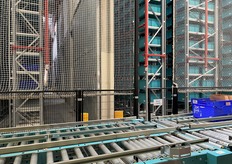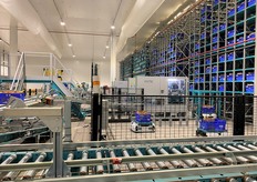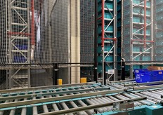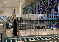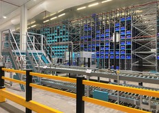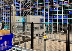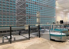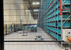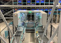 Le robot Skypod achemine les produits jusqu'à la préparatrice.