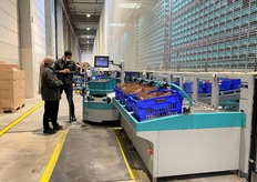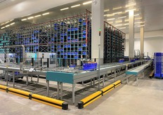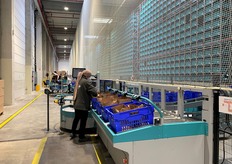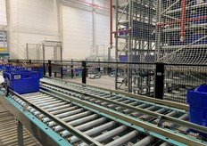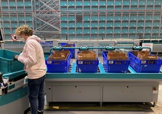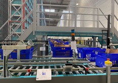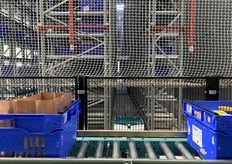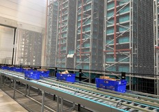 Tapis roulant amenant les bacs vers la zone de tri.
