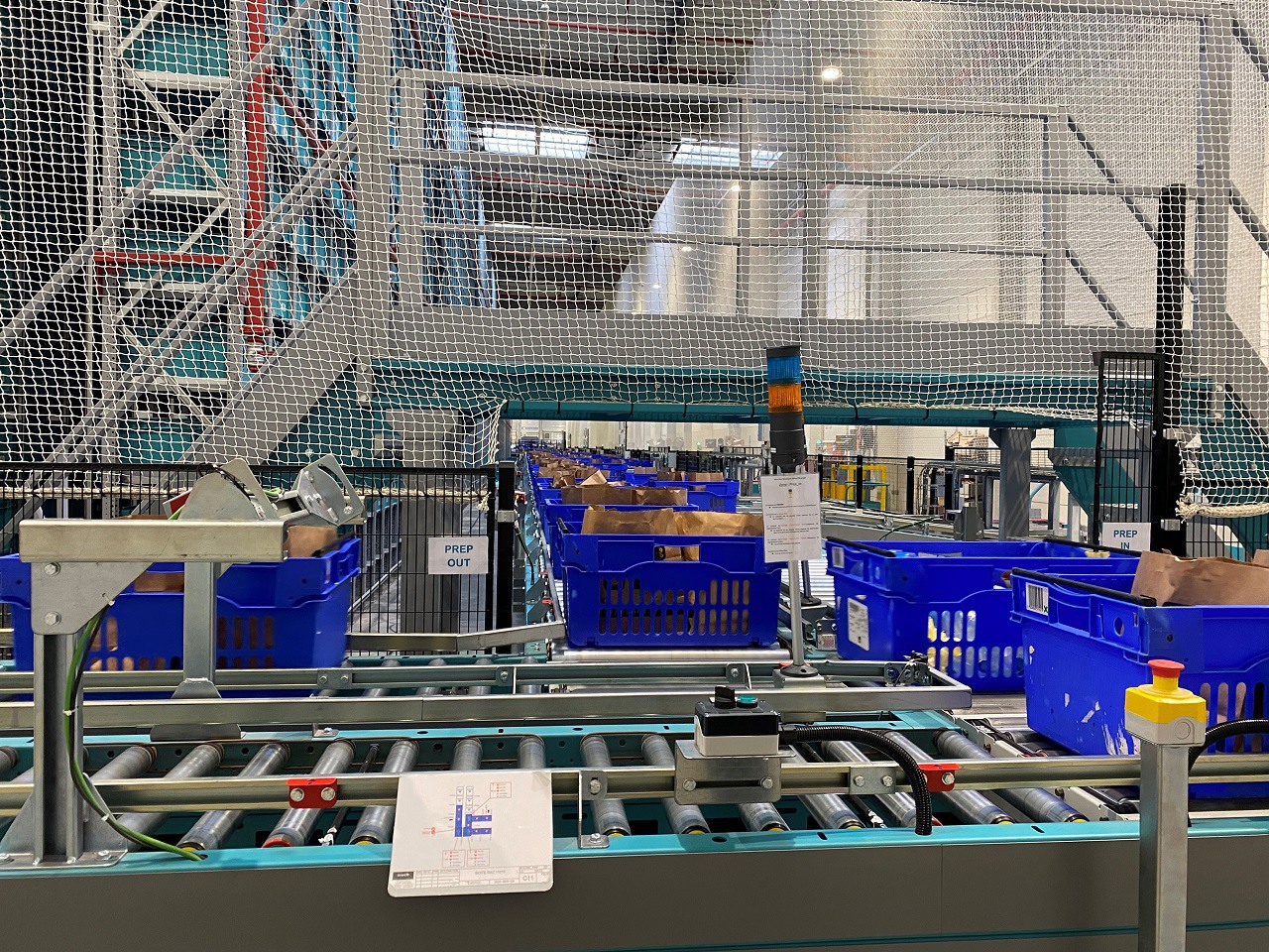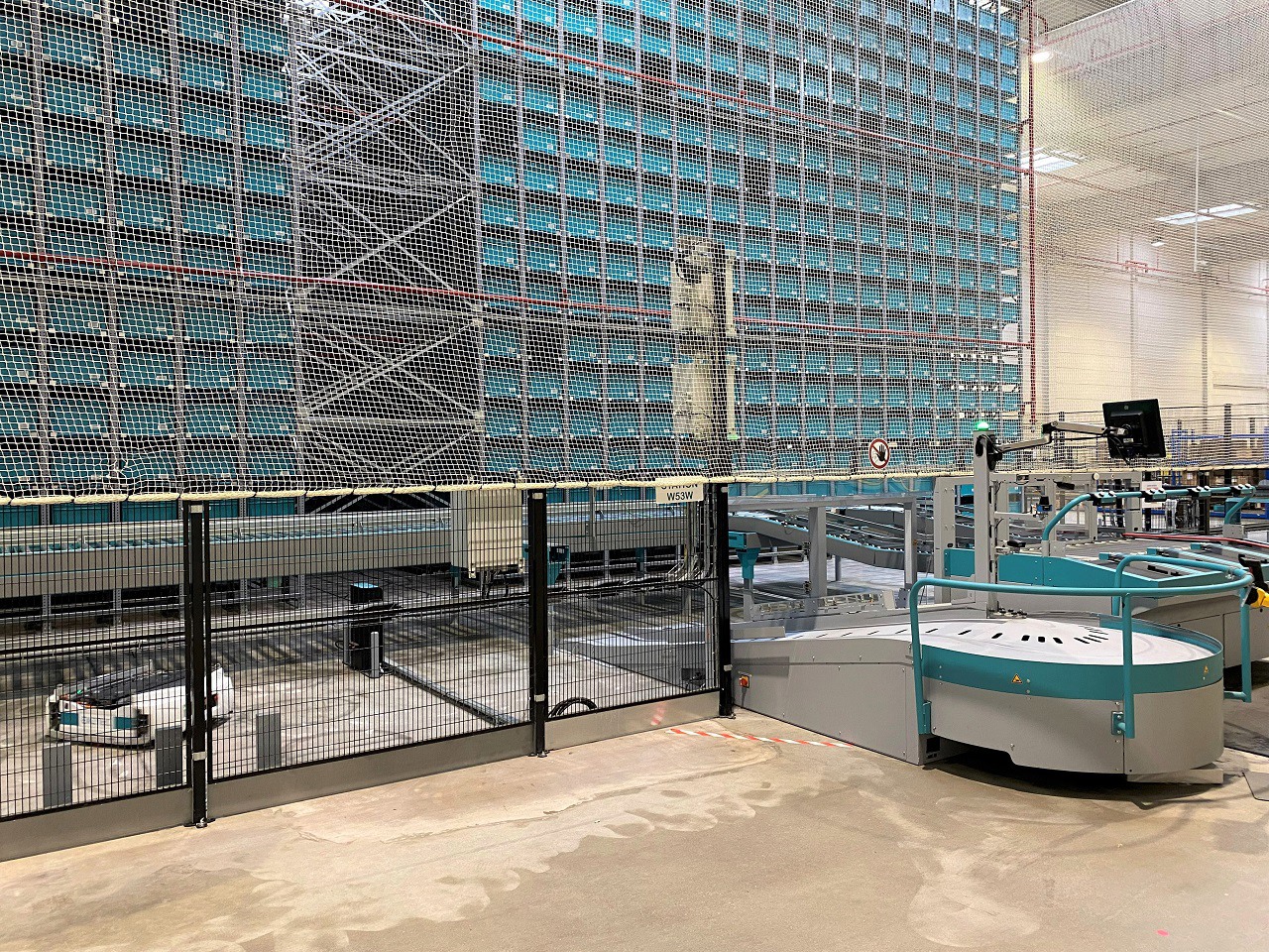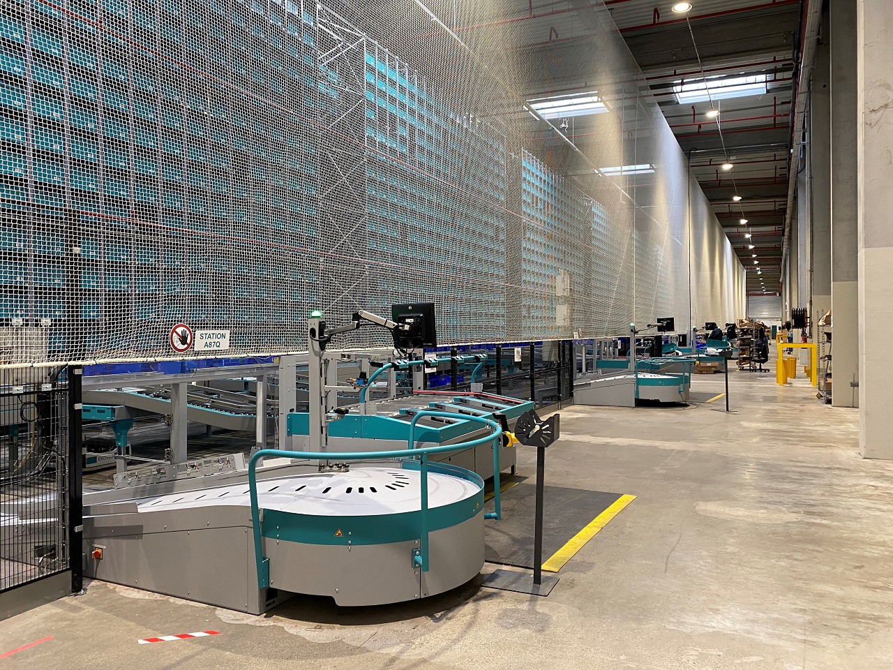 Le centre névralgique du réseau de tapis roulants où les bacs se croisent et partent chacun vers leur destinée.