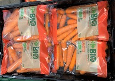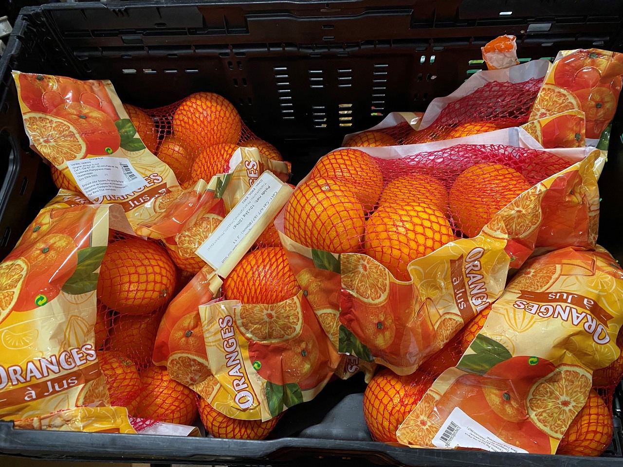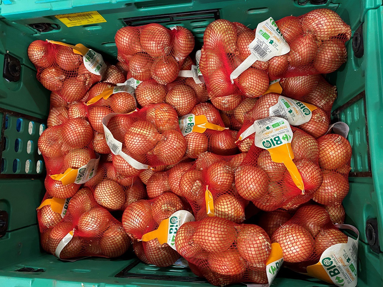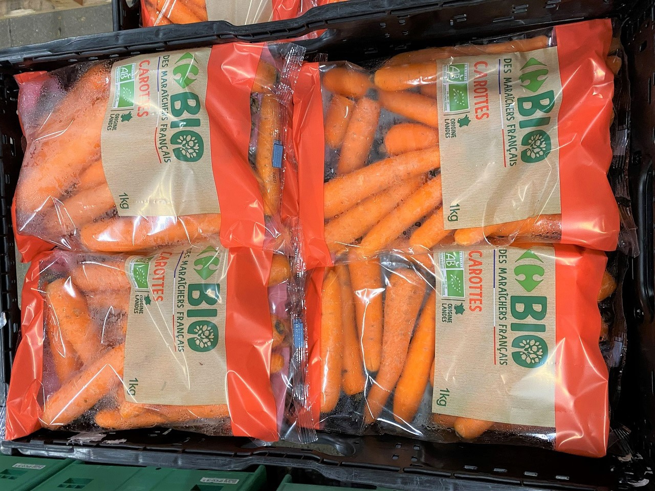 Bacs acheminés sur le tapis roulant.