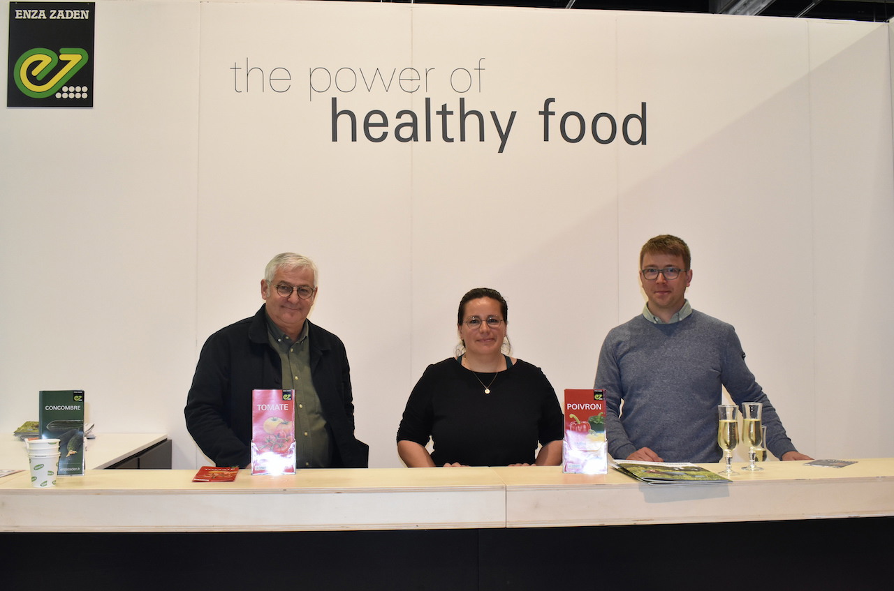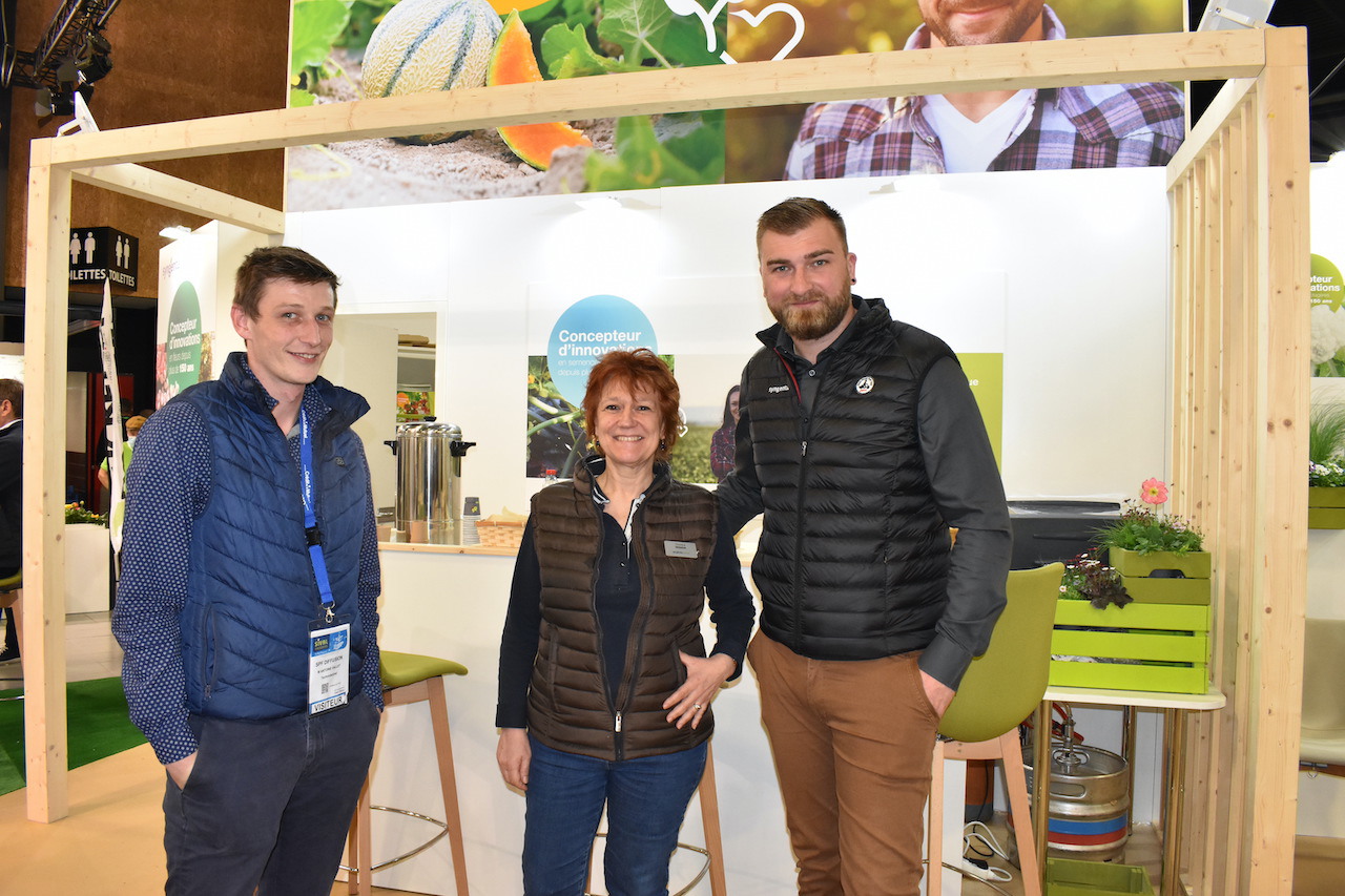 Bernard Loyer, Technico-commercial, Amélie Dumas, sélectionneuse laitue et Thomas Dupuy, ingénieur commercial et chef produit melon, sur le stand Enza Zaden.