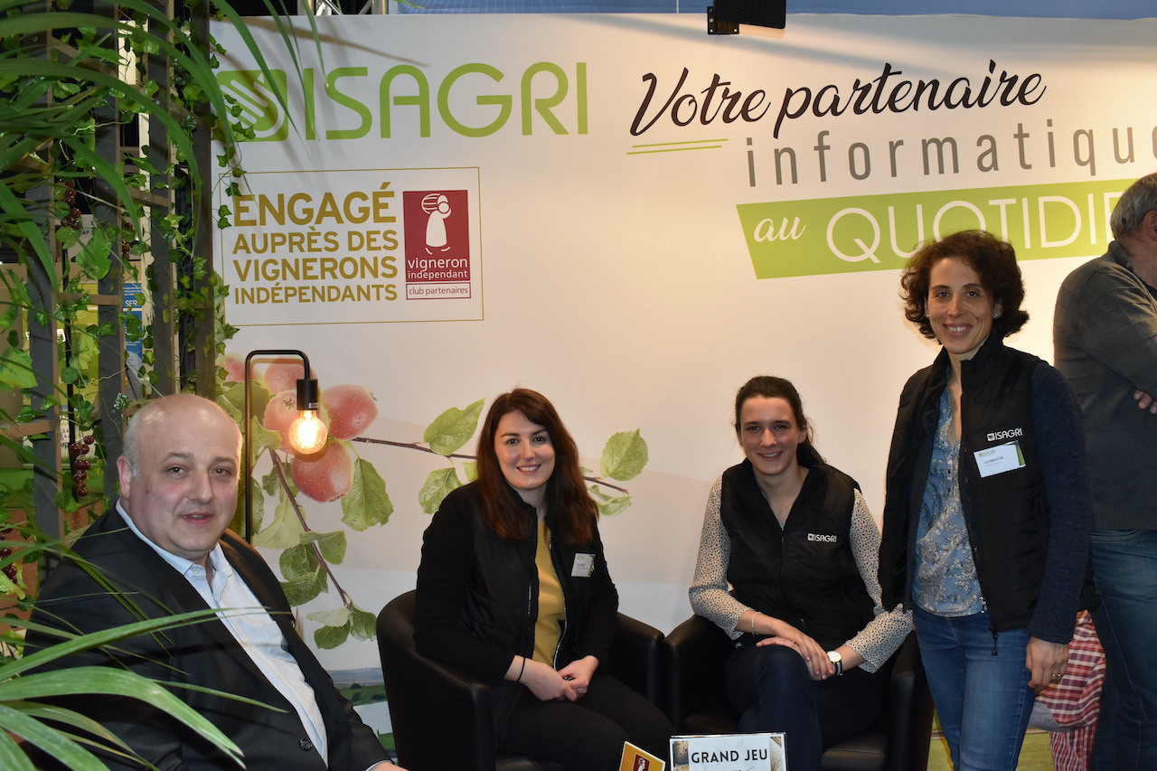 Pierre Vernay, Roxane Loretzin, Elinore Guillemot et Aude Bouvattier sur le stand Isagri.