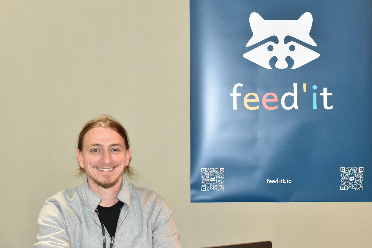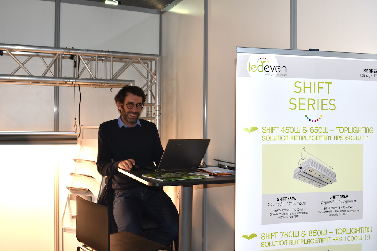 Guillaume Cecchini, Dirigeant et Co-fondateur de Feed’it, solutions digitales pour l’agriculture, sur le stand de la Ferme Digitale.