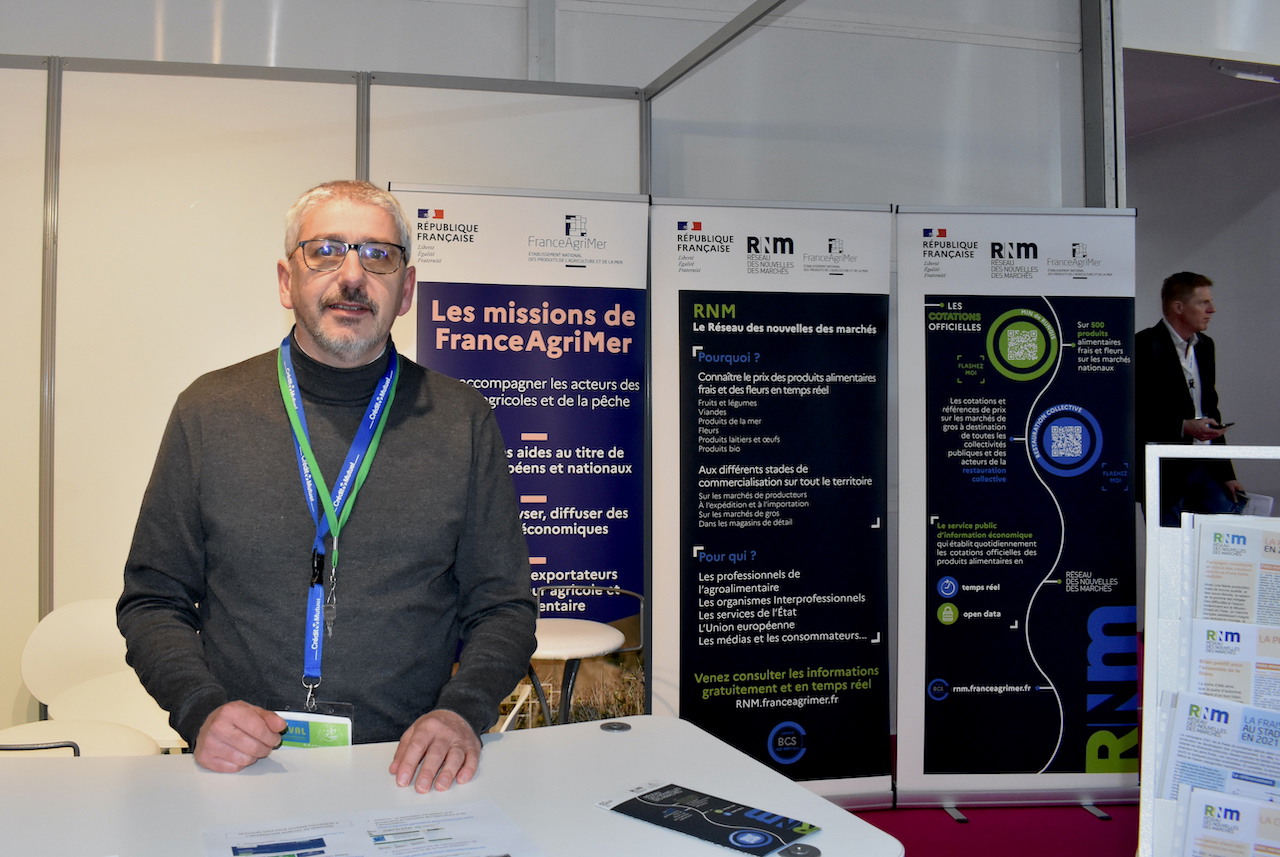 Stéphane Marchand, chef de centre RNM Angers-Tours sur le stand commun France AgriMer, Réseau des Nouvelles des Marchés (RNM) et DRAAF.