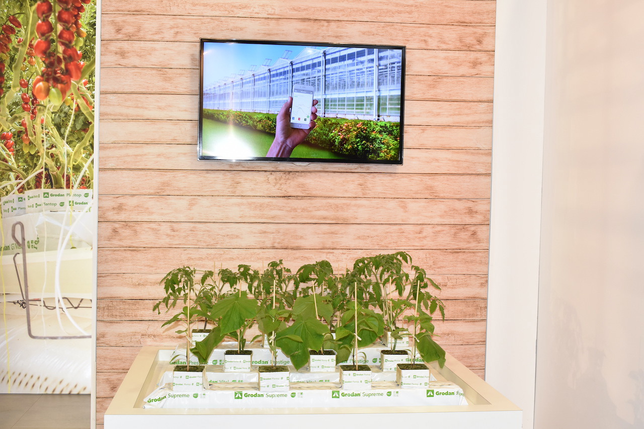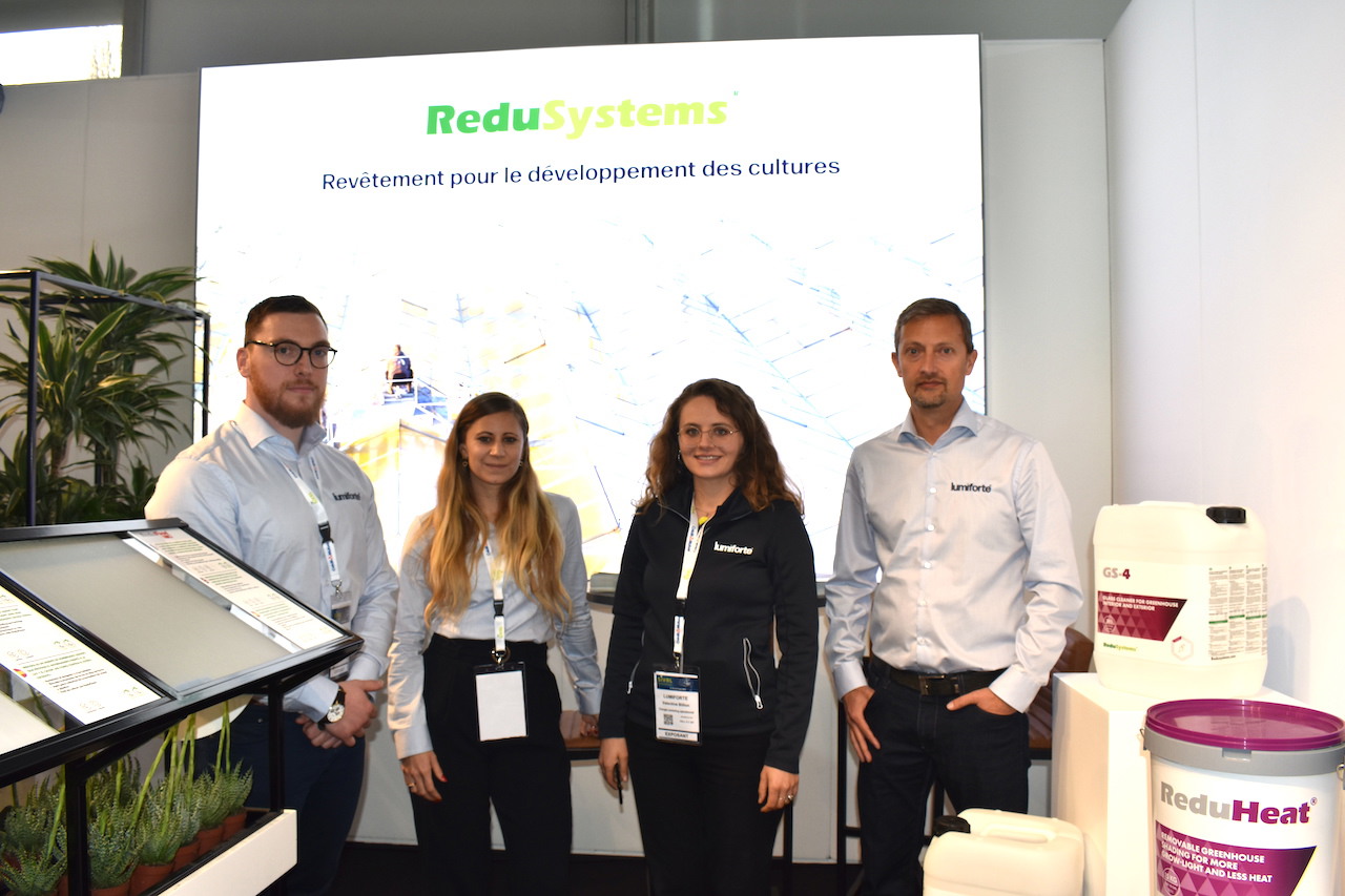 Jean-Marc Brager, Arnaud Ripoche, Harriette Rademakers et Marie-Odile Lambert sur le stand Grodan.