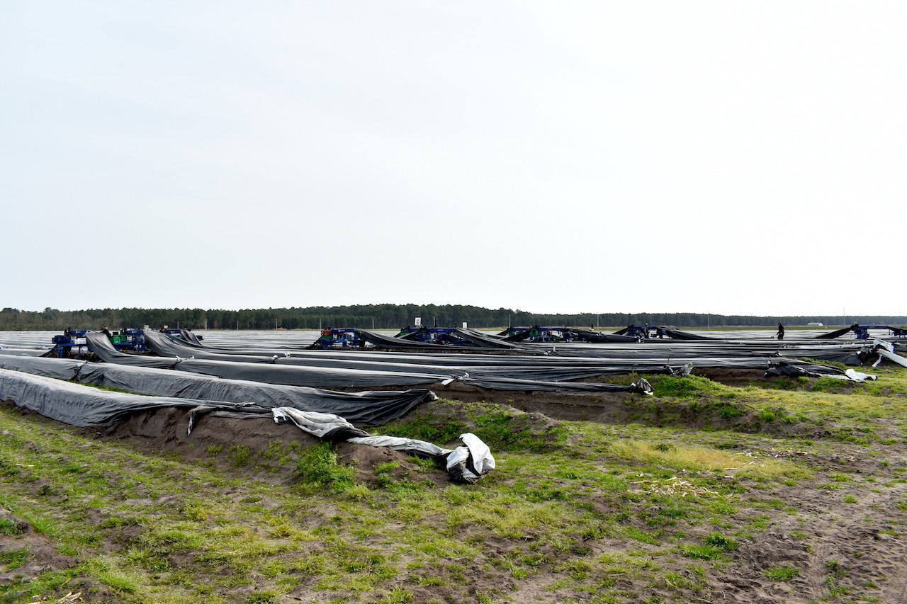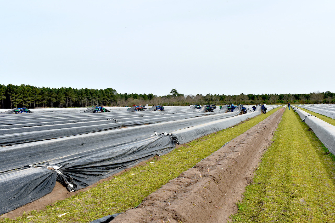 Les robots suivent les buttes, soulèvent la bâche en plastique pour permettre au cueilleur de travailler puis la remet en place