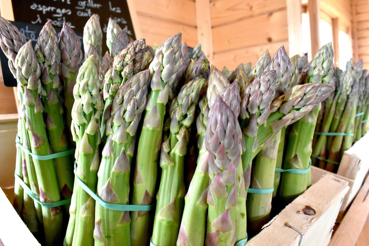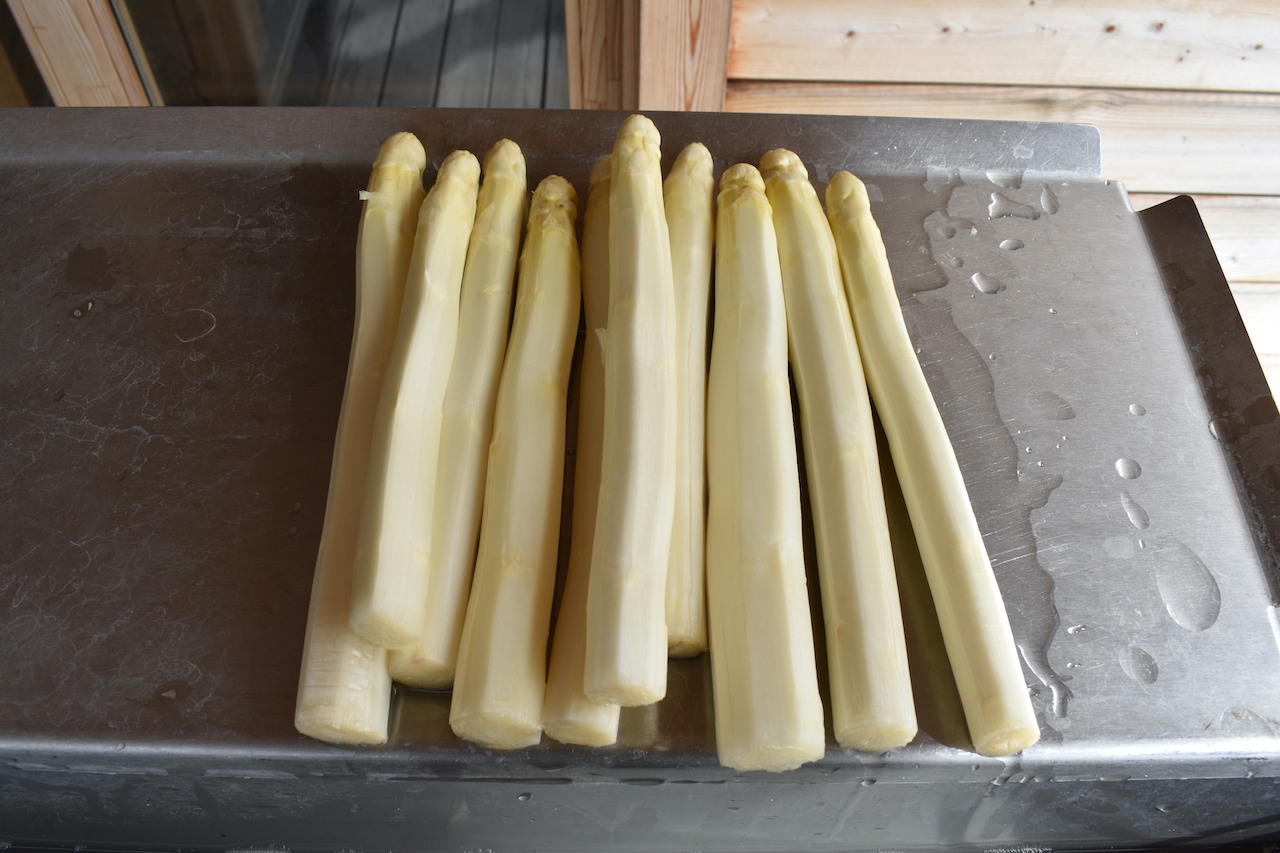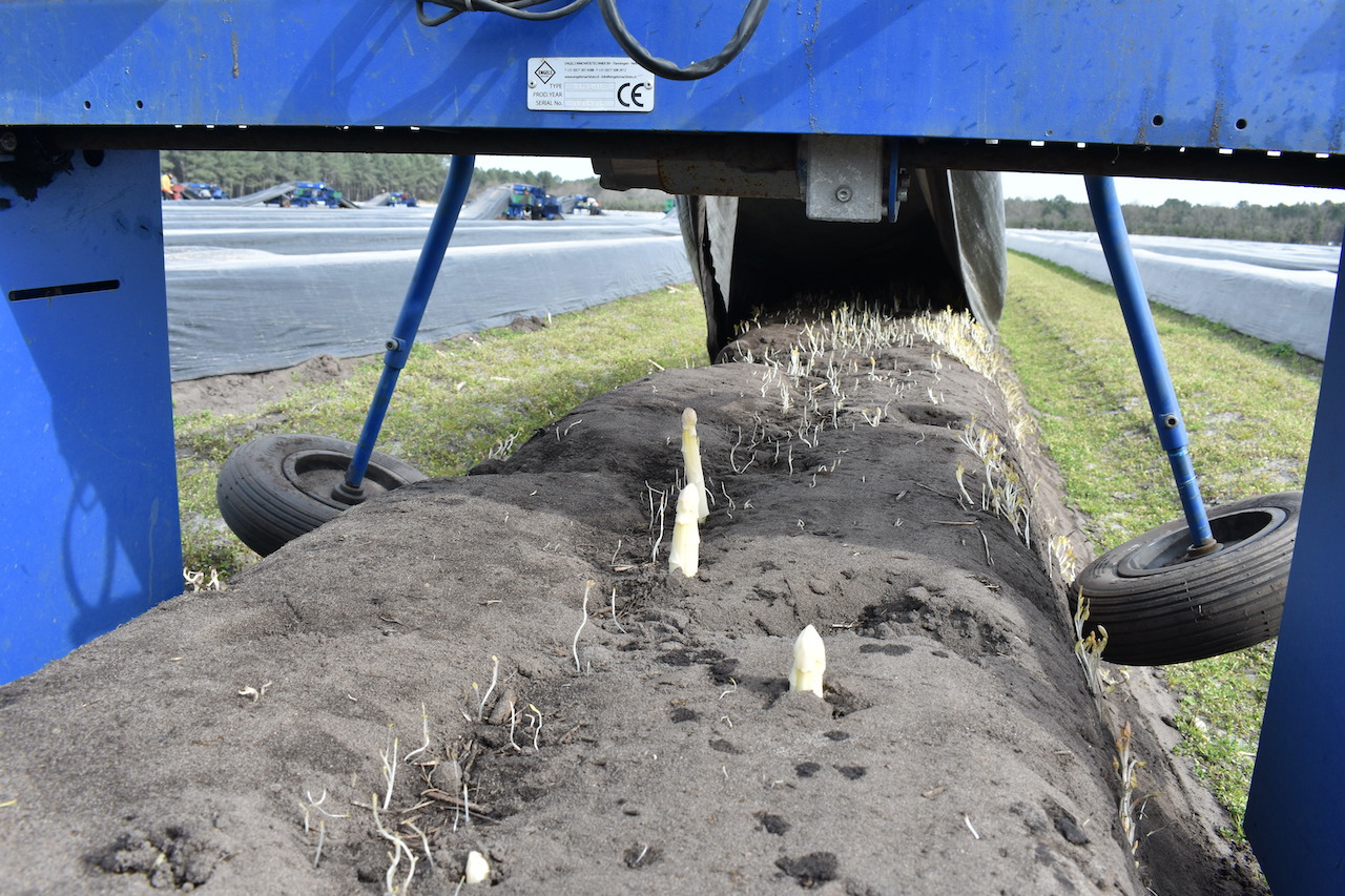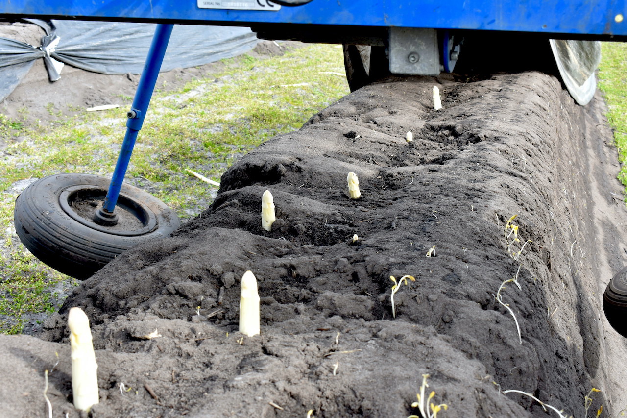 Les asperges qui furent bien protégées par les bâches en plastique noir sont dépourvues de pigment vert, puisque la photosynthèse permise grâce à la lumière n'a pas pu avoir lieu. Les asperges sont donc blanches