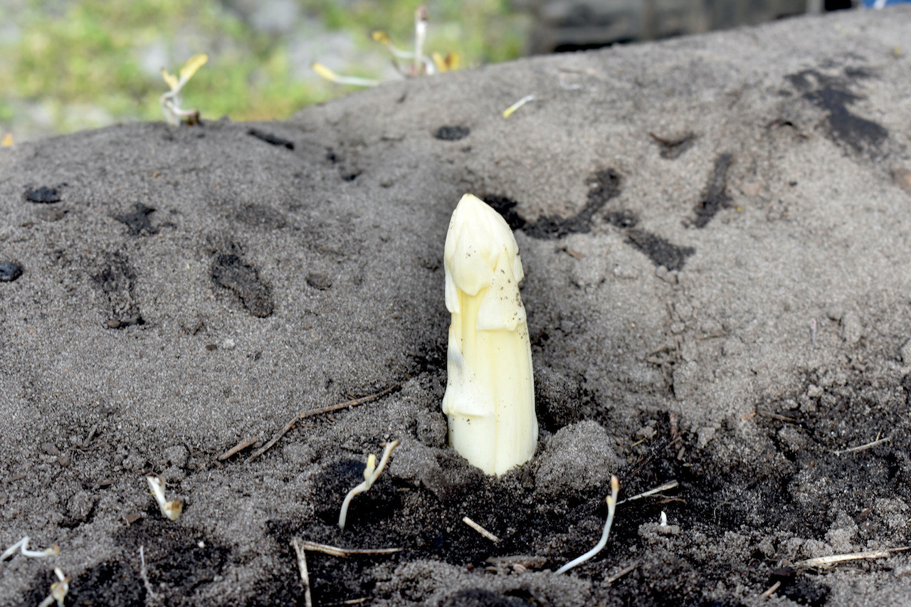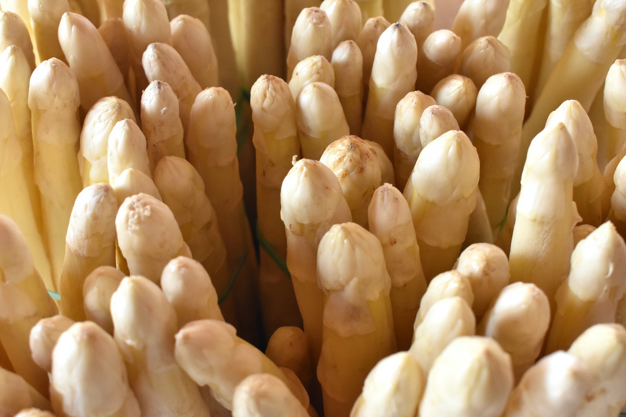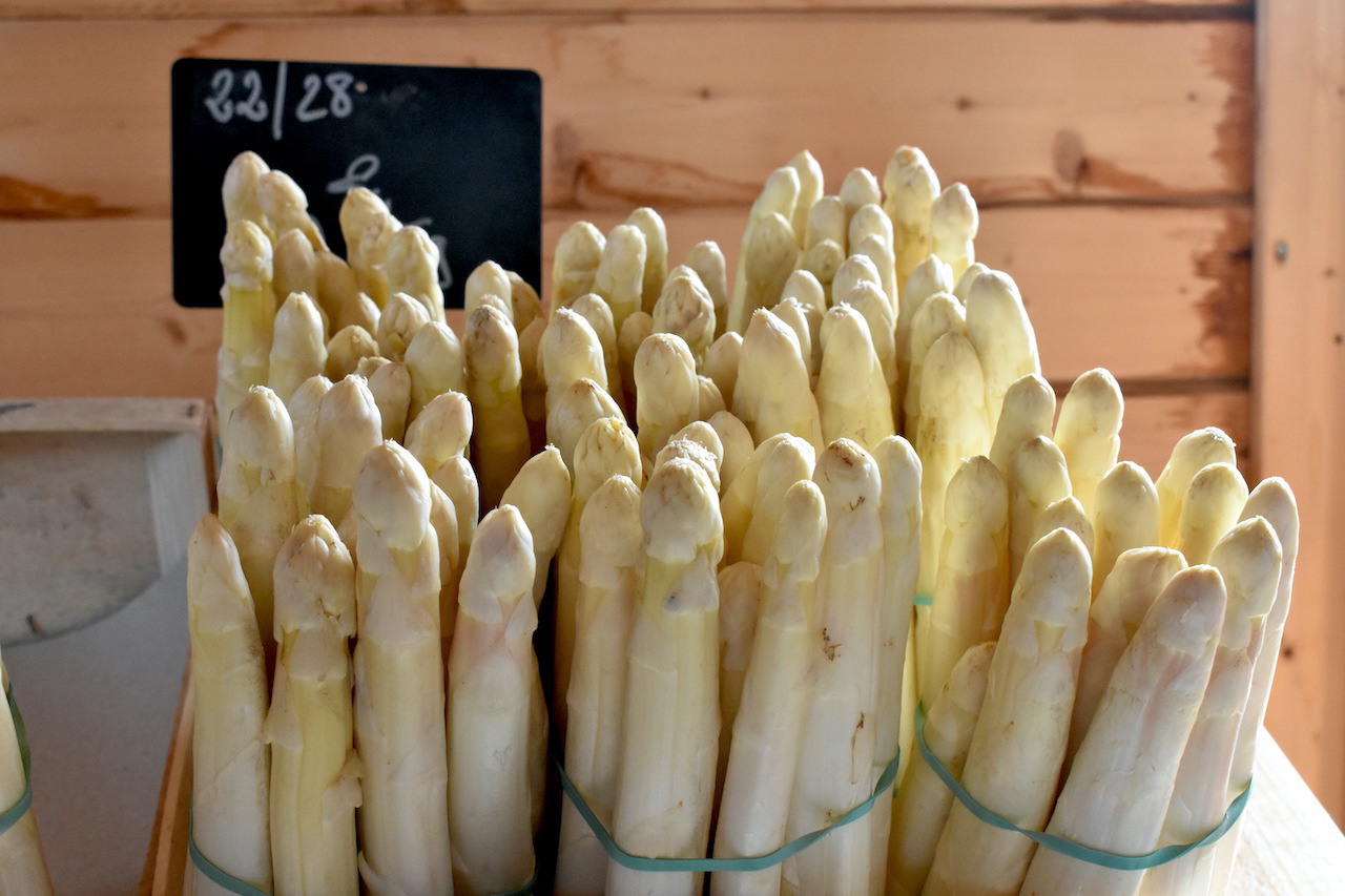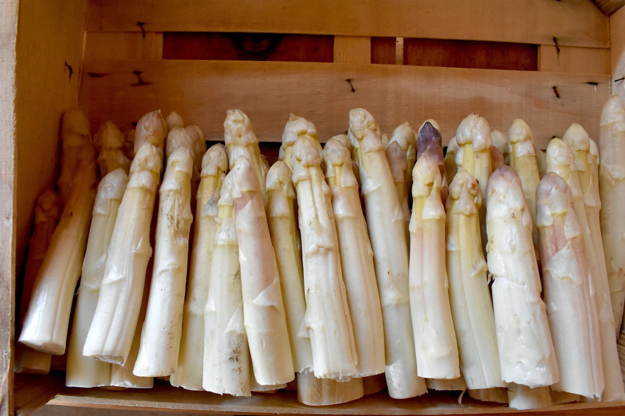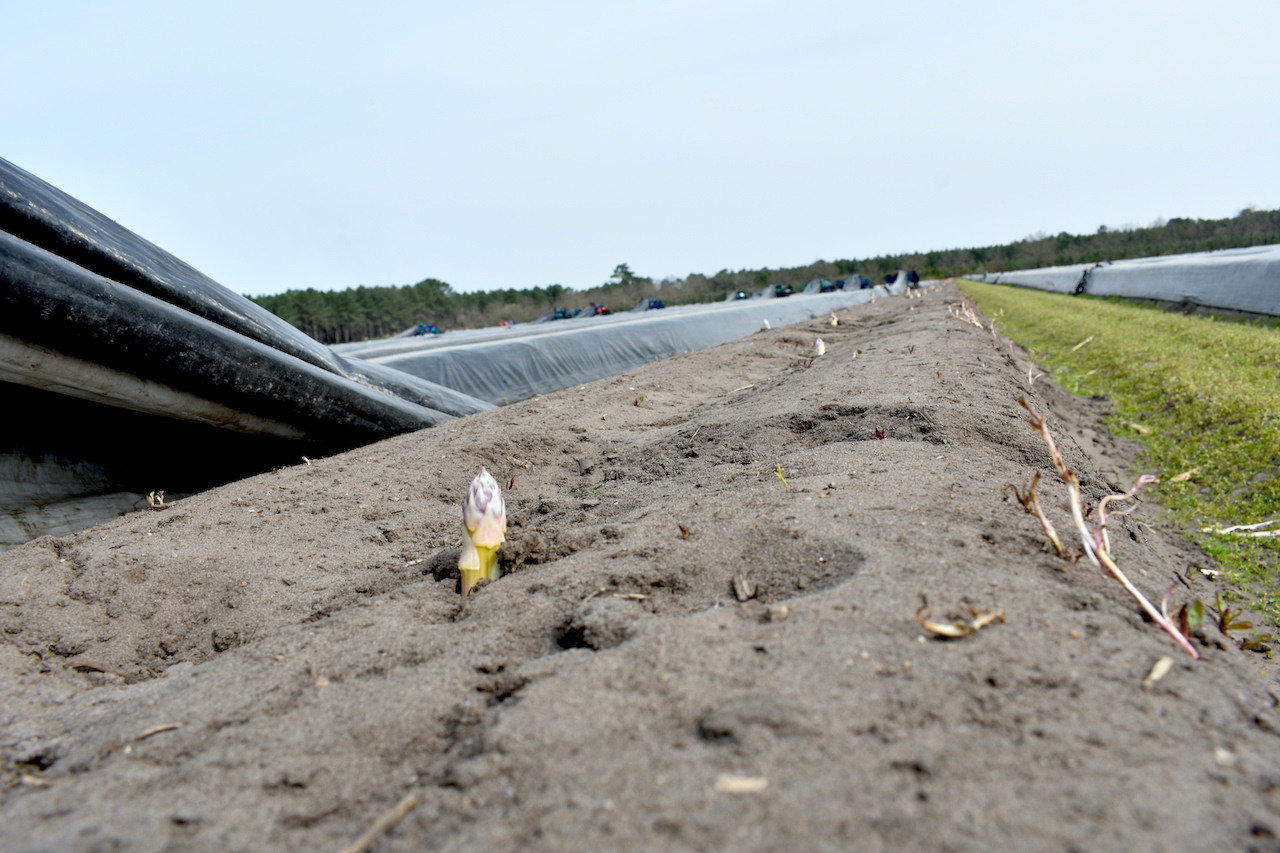 Les asperges qui furent bien protégées par les bâches en plastique noir sont dépourvues de pigment vert, puisque la photosynthèse permise grâce à la lumière n'a pas pu avoir lieu. Les asperges sont donc blanches