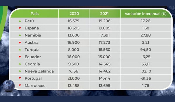 Les exportations de myrtilles du Pérou augmentent de 92,9 % pour atteindre 135 000 tonnes