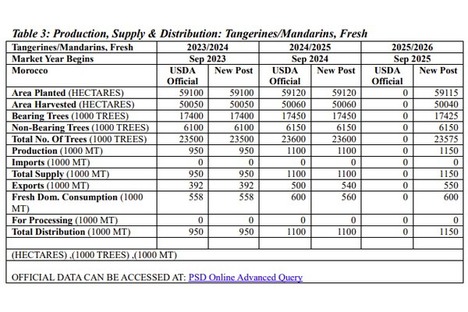 La production marocaine de mandarines devrait augmenter de 4 % au cours de l'année scolaire 2025/26