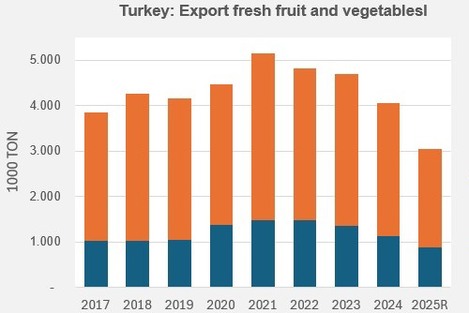 Forte baisse des exportations turques de fruits et légumes frais